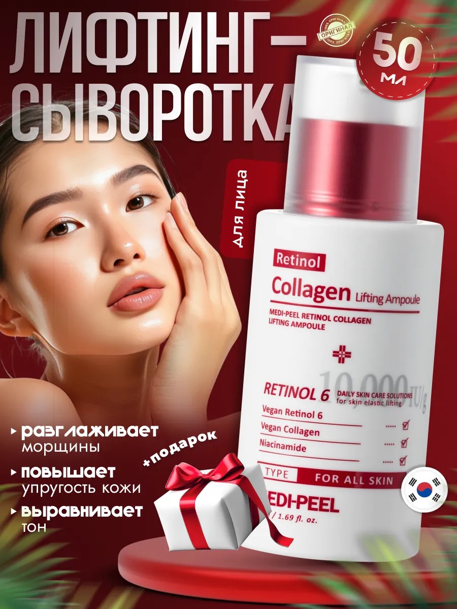 Medi-Peel Retinol Collagen Lifting Ampoule is an intensive concentrate of proven active ingredients that lift and smooth the skin, reduce the depth of wrinkles, tighten enlarged pores and even out microrelief.