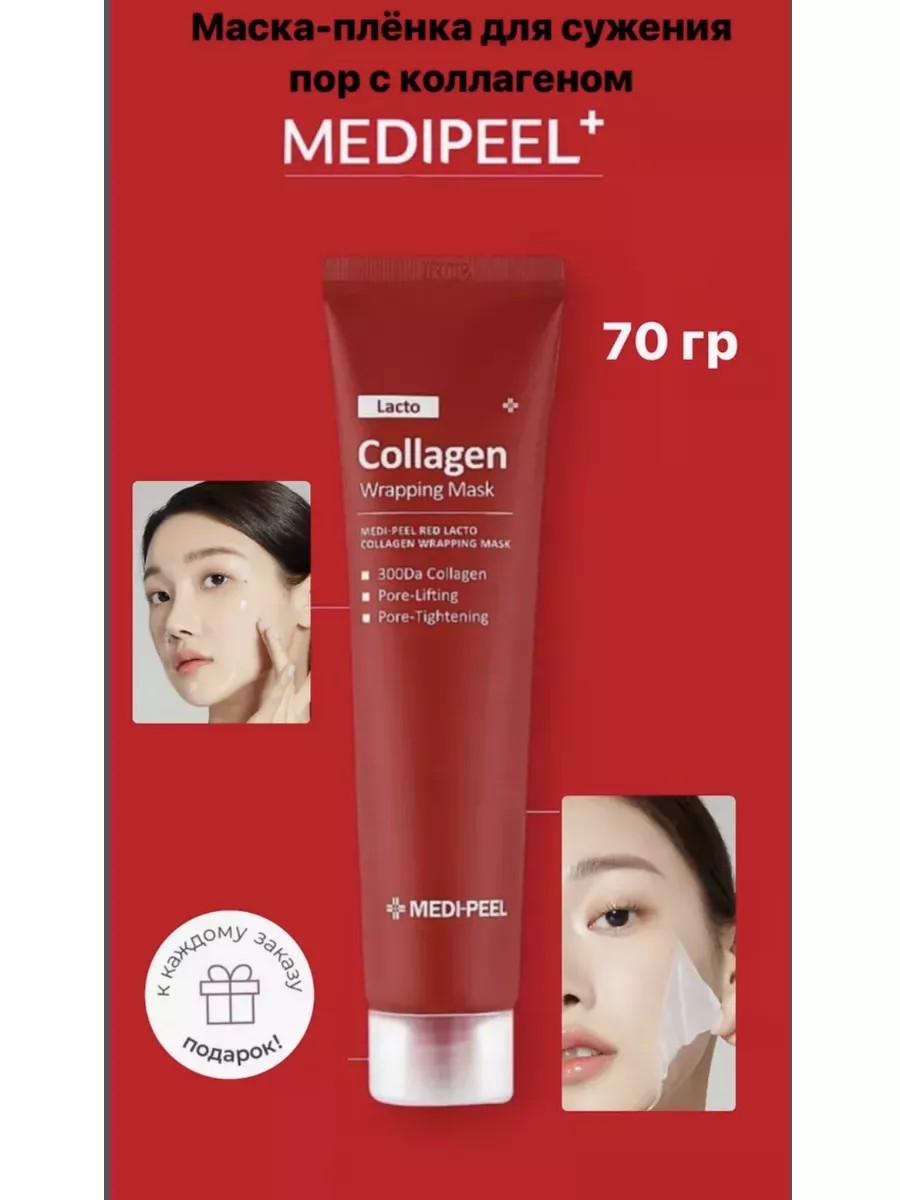 Маска-плёнка Medi-Peel Red Lacto Collagen Wrapping Mask — это нежный гель, который застывает на коже, подтягивает и сужает расширенные поры, делая их менее заметными. Маска сокращает размер пор, уменьшает их глубину, сглаживает микрорельеф.