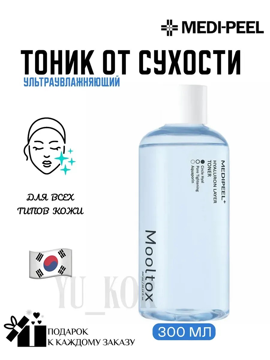 Ультраувлажняющий тоник Medi-Peel Hyaluronic Acid Layer Mooltox Toner моментально освежает при нанесении, восполняет недостаток влаги и избавляет от обезвоженности, а также повышает эластичность и упругость кожи.