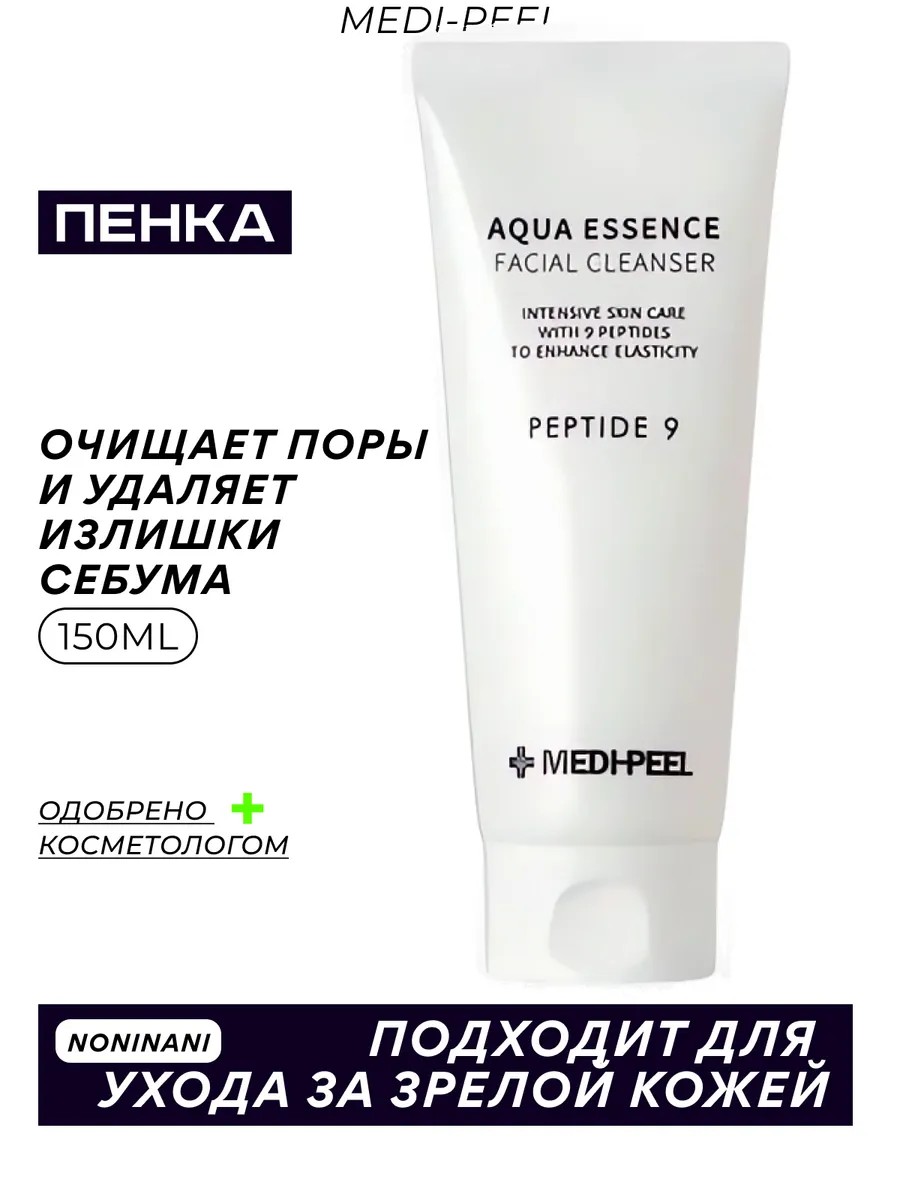 Увлажняющая пенка для умывания с пептидами Medi-Peel Peptide 9 Aqua Essence Facial Cleanser тщательно удаляет загрязнения и остатки макияжа с поверхности кожи, очищает поры, удаляет излишки себума. Оказывает дополнительное омолаживающее действие, повышает упругость и способствует разглаживанию морщин.