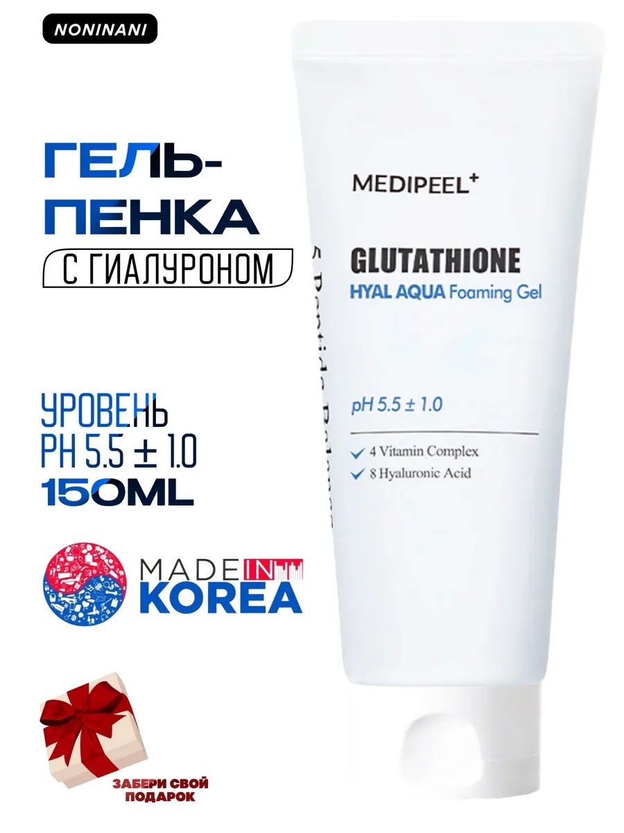 Увлажняющий гель-пенка для умывания MEDIPEEL Glutathione Hyal Aqua Foaming Gel Cleanser отлично подходит для сухой и обезвоженной кожи: средство деликатно избавляет от пыли, излишков себума и остатков макияжа, не повреждая гидролипидный барьер. Слабокислотный гель тщательно удаляет все загрязнения без чувства стянутости, оставляет приятное ощущение свежести и увлажнённости после умывания.