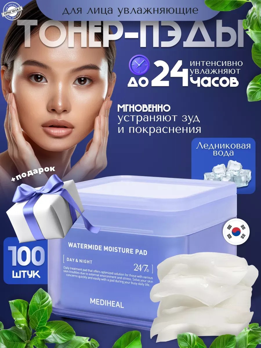 Интенсивно увлажняющие тонер пэды с ледниковой водой Mediheal Watermide Moisture Pad в кратчайшие сроки восполняют недостаток влаги после умывания, нормализует оптимальный кислотно-щелочной баланс эпидермиса. Продукт эффективно борется с сухостью и обезвоженностью кожи, обильно гидрируют и избавляют от стянутости.
