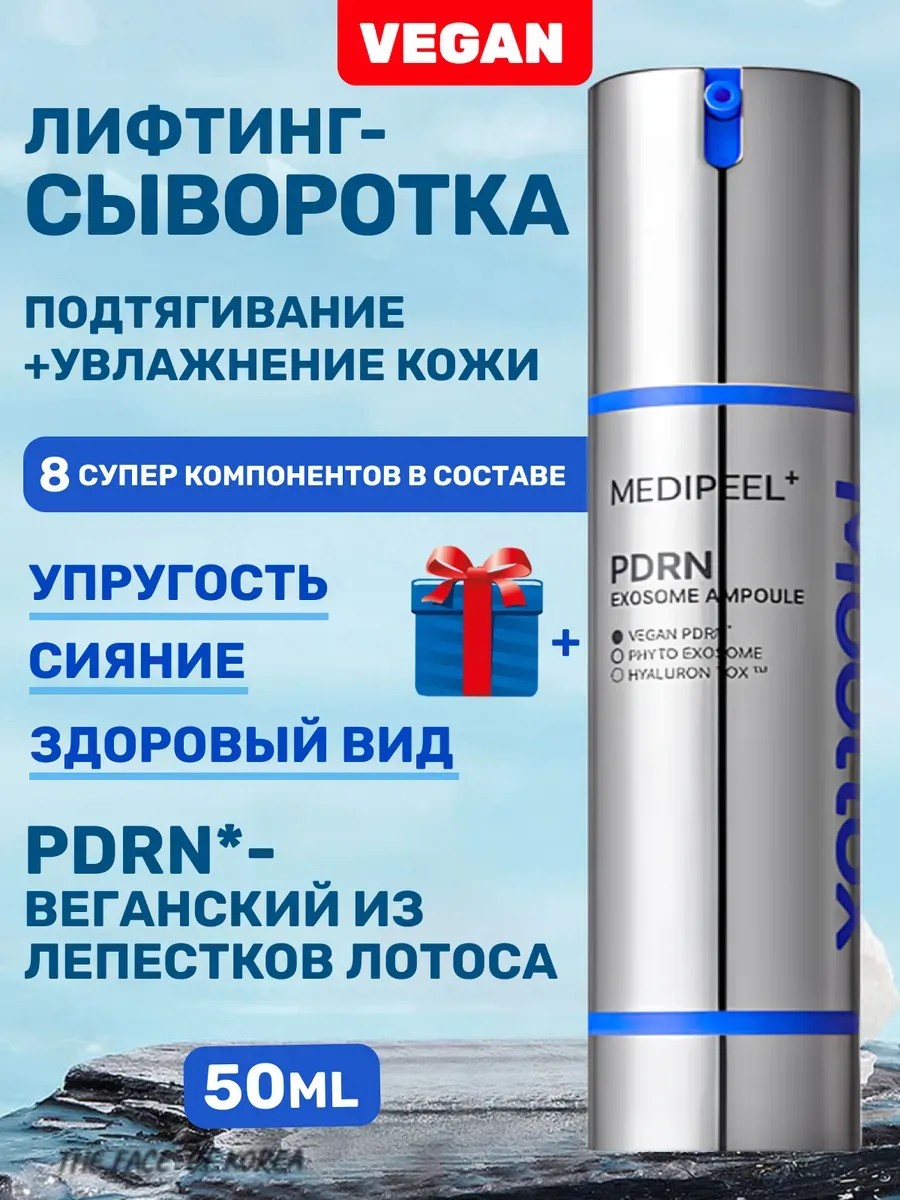 Подтягивающая и увлажняющая ампула MEDI-PEEL Mooltox PDRN Exosome Ampoule — это идеальное решение для всех, кто стремится вернуть коже упругость, сияние и здоровый вид. Уникальная формула с фитоэкзосомами и веганским PDRN из лотоса эффективно стимулирует регенерацию кожи, восстанавливая её изнутри. Благодаря нанотехнологиям, экзосомы размером 130 нм проникают глубоко в поры, доставляя активные компоненты прямо в клетки кожи для максимального эффекта.