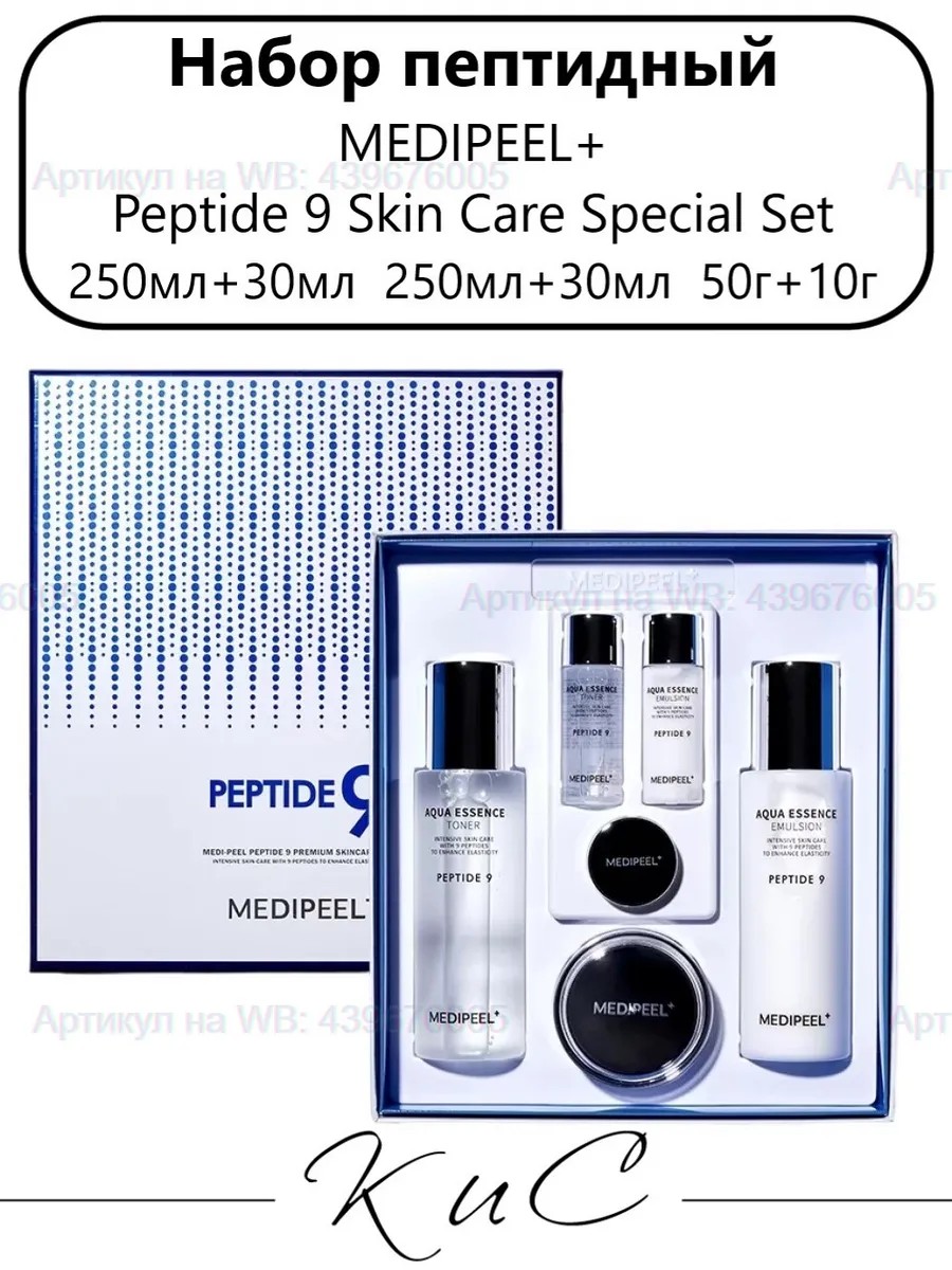 Medi-Peel Peptide 9 Skin Care Special Set состоит из трёх полноразмерных уходовых продуктов и трёх миниатюр. Это популярный в Южной Корее подарочный набор, который подходит и для путешествий, и для полноценного домашнего ухода за кожей лица.