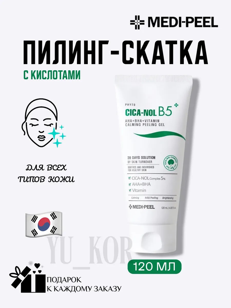 Пилинг-скатка с кислотами Medi-Peel Phyto Cica-Nol B5 AHA BHA Vitamin Calming Peeling Gelмягко отшелушивает ороговевший слой эпидермиса, удаляет излишки кожного сала и прочие загрязнения. Деликатно полирует поверхность кожи и смягчает, ускоряет процессы регенерации и улучшает проникновение всех активов уходовых средств. Содержит AHA и BHA-кислоты, комплекс CICA, пантенол.