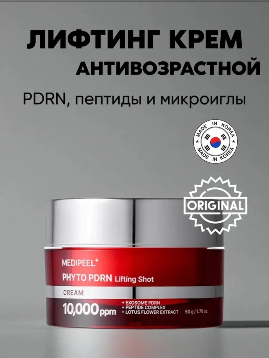 Пептидный лифтинг-крем с ПДРН MEDIPEEL Phyto Exosome PDRN Lifting Shot Cream — средство для борьбы с первыми признаками старения. Сокращает глубину морщин, подтягивает и разглаживает, повышает тургор, делает кожу более упругой. Увлажняет, питает, придаёт здоровое сияние и выравнивает тон. Стимулирует клеточную регенерацию, замедляет возрастные изменения и продлевает молодость кожи. Содержит 12 пептидов, ПДРН, витамины группы B, 9 видов гиалуроновой кислоты, PHA, глутатион и систему доставки активов с помощью фитоэкзосом.