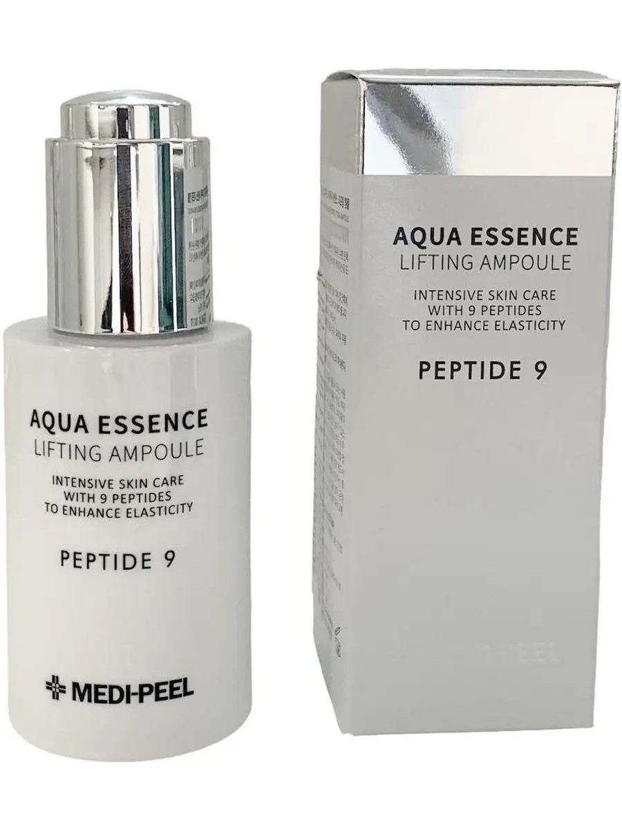 Antioxidant lifting serum with peptides Medi-Peel Peptide 9 Aqua Essence Lifting Ampoule The serum formula is designed in such a way that the active ingredients work in combination with each other in perfect balance.