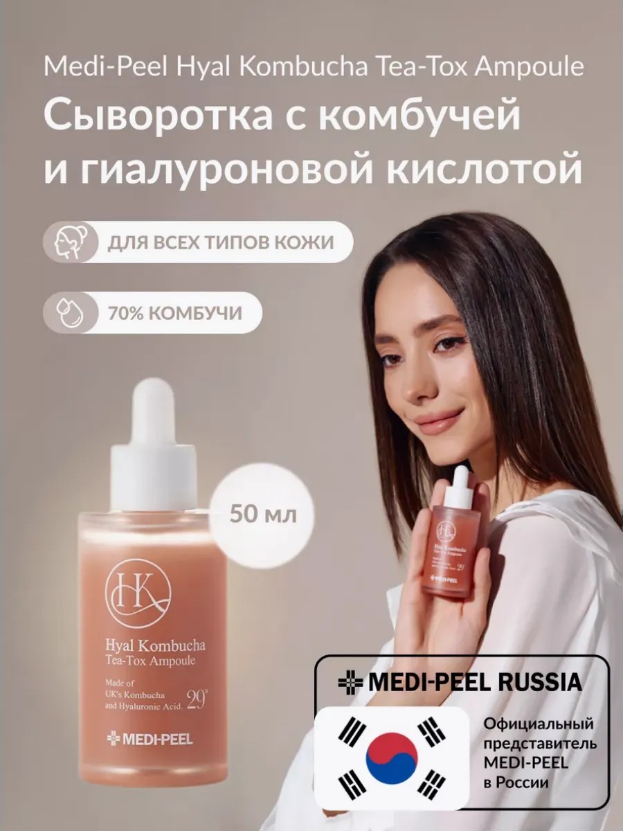 Высококонцентрированная сыворотка с добавлением 70% Комбучи. Создана с использованием уникальной веганской рецептуры.