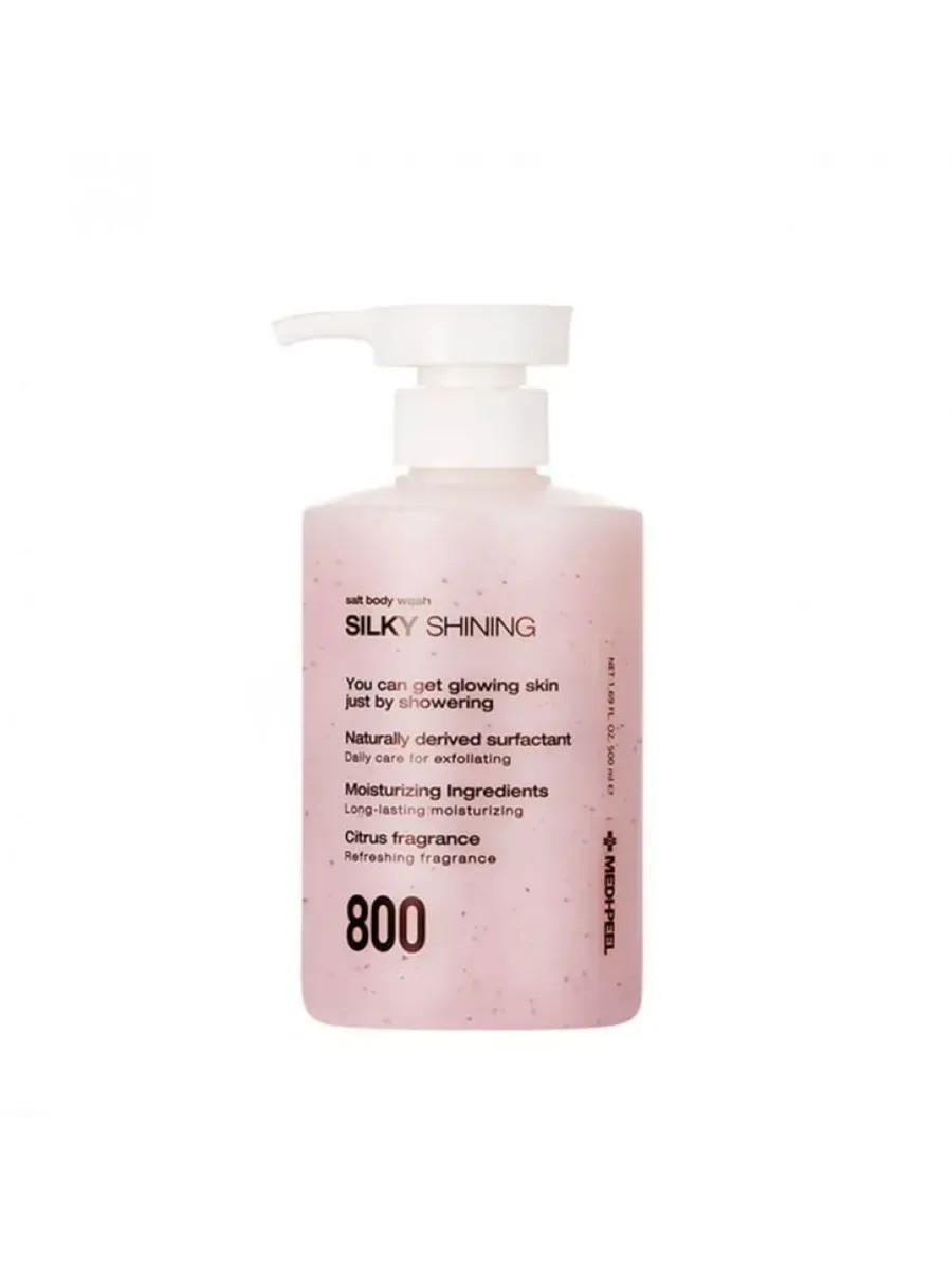 The softening Medi-Peel Silky Shining Salt Body Wash gel scrub leaves skin soft and velvety, effectively eliminating dryness and flaking.