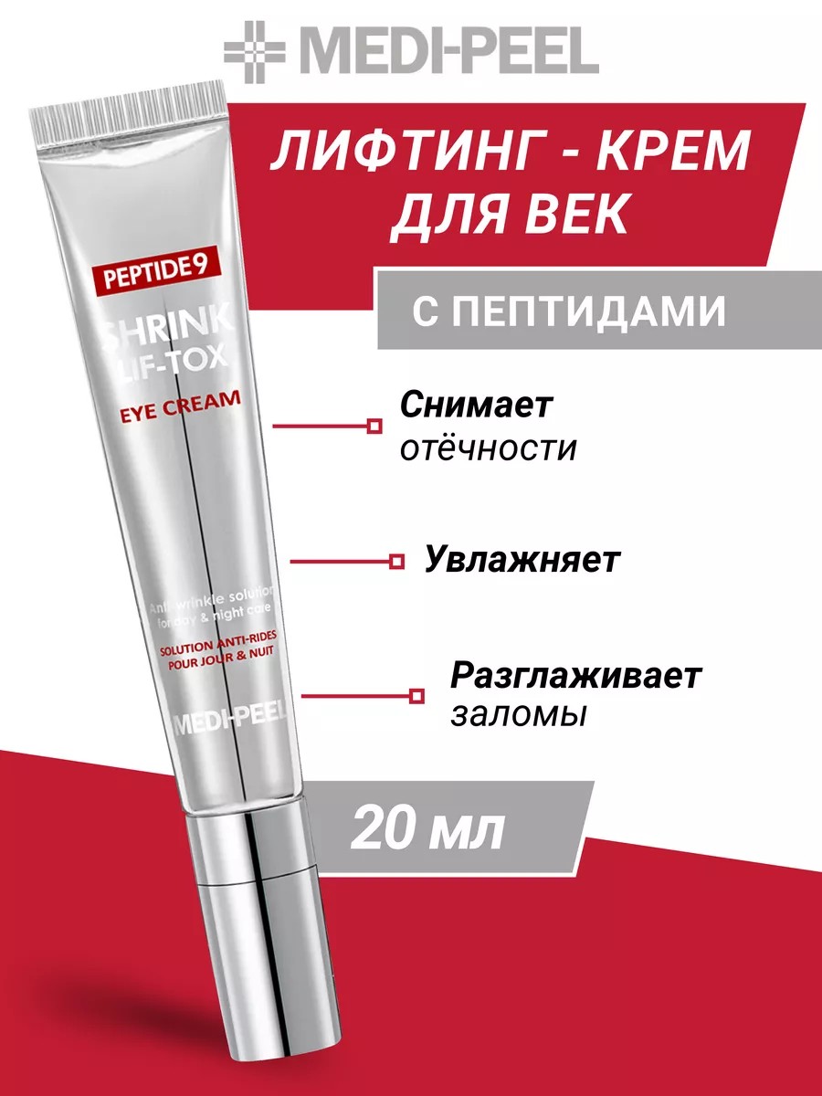 Medi-Peel Peptide 9 Shrink Lif-Tox Eye Cream, an intensive massage cream with a lifting effect, provides an immediate lifting effect, smoothes skin creases, and helps reduce the appearance of even deep wrinkles.