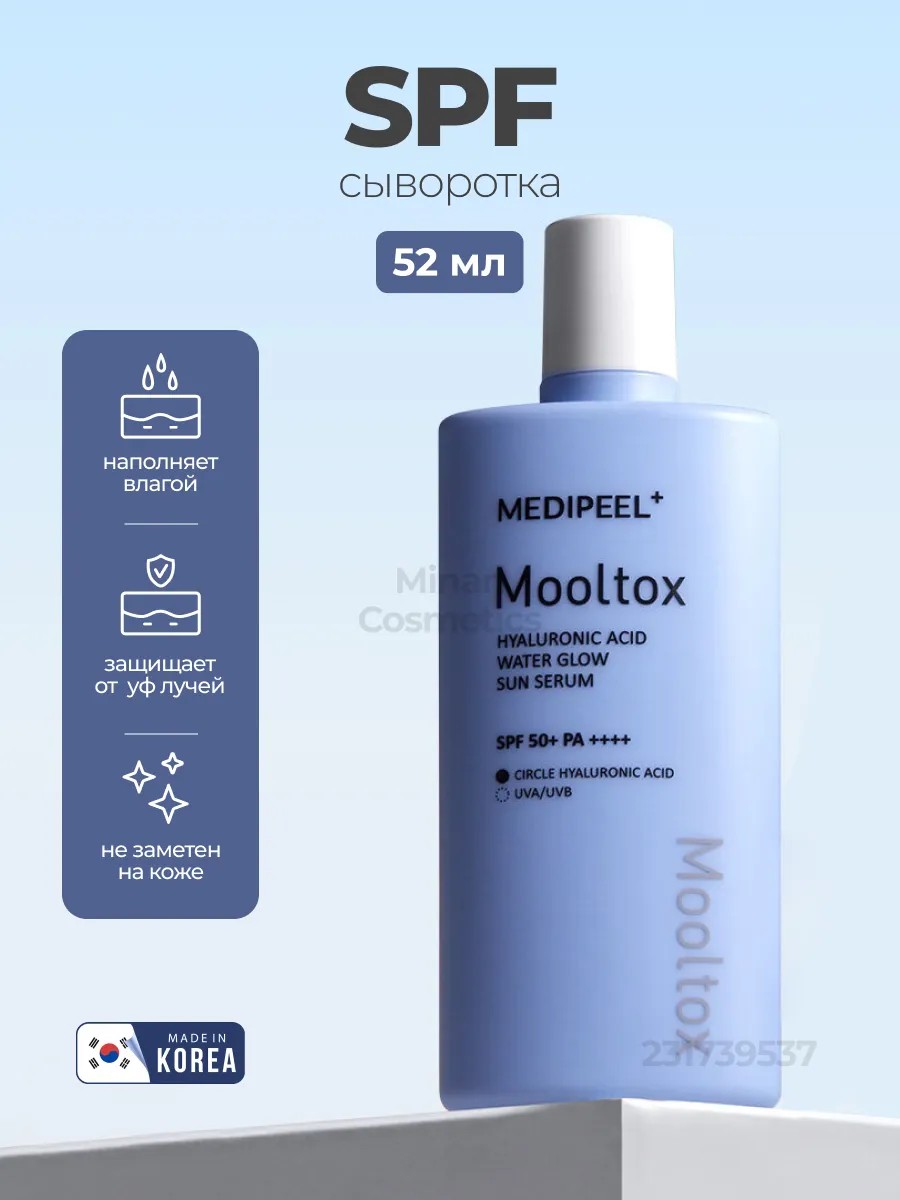 Корейская солнцезащитная сыворотка для лица Medi-Peel Mooltox Hyaluronic Acid Water Glow Sun Serum SPF50+ /PA++++ 52мл.