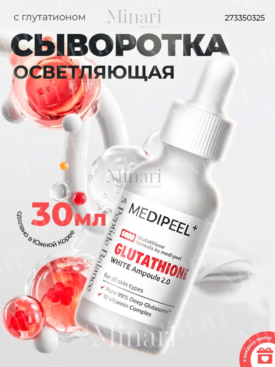 Эта осветляющая ампула от Medi-Peel представляет собой обновленную версию, созданную для глубокого ухода за кожей, направленного на её осветление и восстановление сияния. В основе ампулы лежит высококонцентрированный глутатион (99%), который обеспечивает интенсивный осветляющий эффект и помогает коже выглядеть более здоровой и яркой.