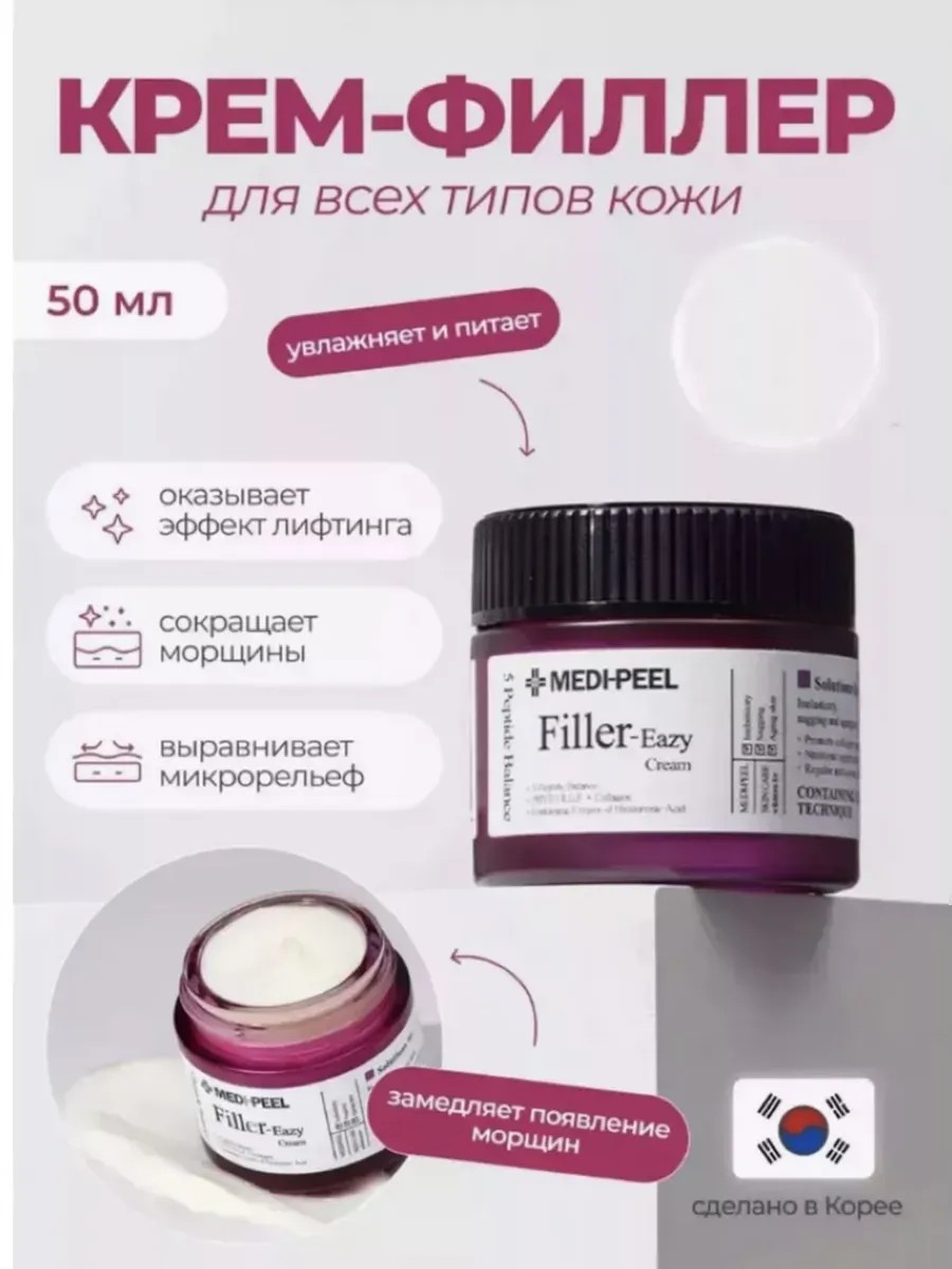 Питательный крем-филлер Medi-Peel Eazy Filler Cream придаёт коже упругость и эластичность, уменьшает видимость морщин, замедляет появление возрастных изменений в области лба, вокруг глаз и в зоне носогубных складок.