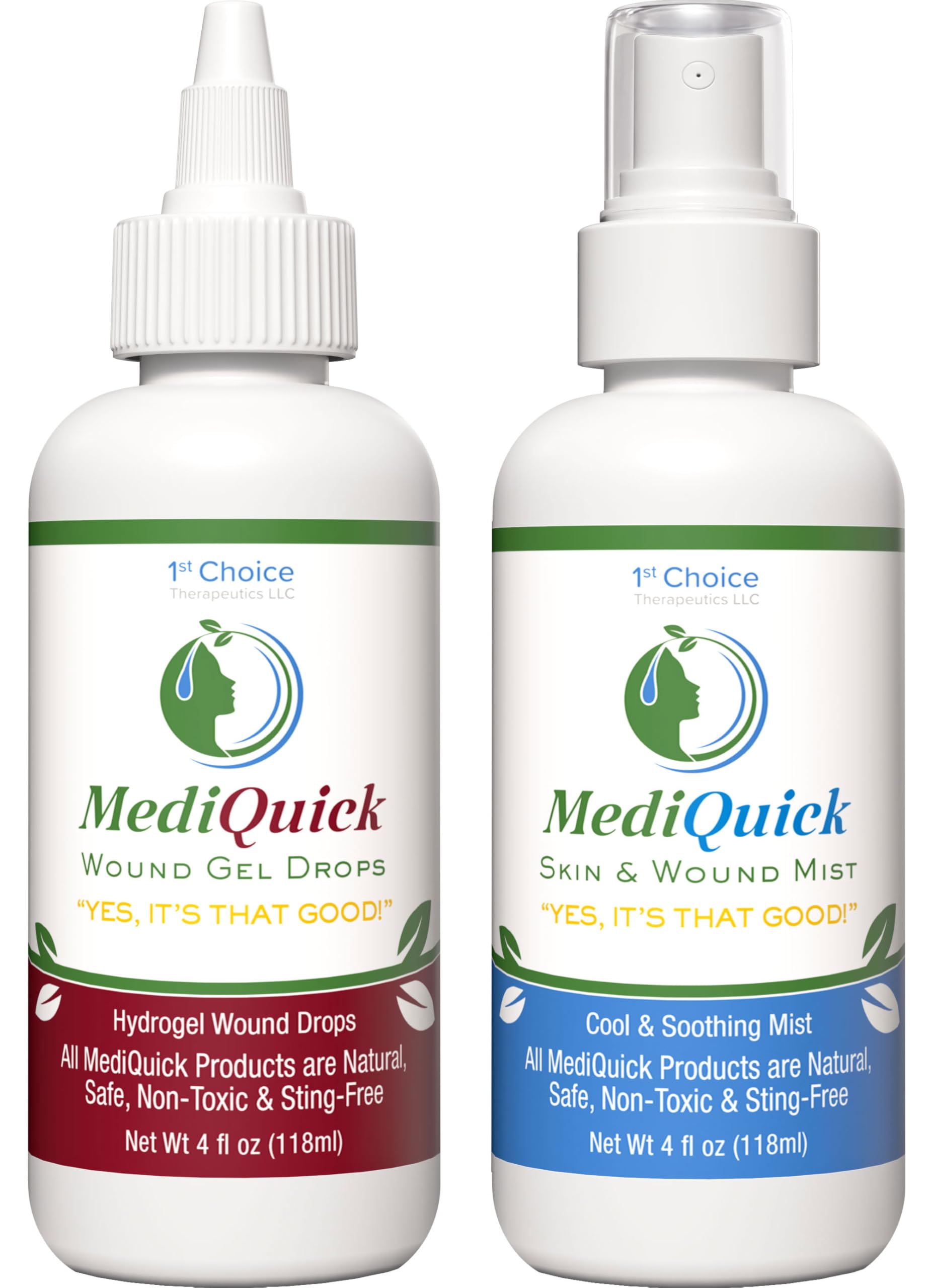 MEDIQUICK Skin and Wound Treatment Bundle | First Aid Healing Mist and Hydrogel Drops | Cool and Soothe Minor Cuts and Burns Scrapes Abrasions Itch Bites Inflammation (Duo Care Pack)