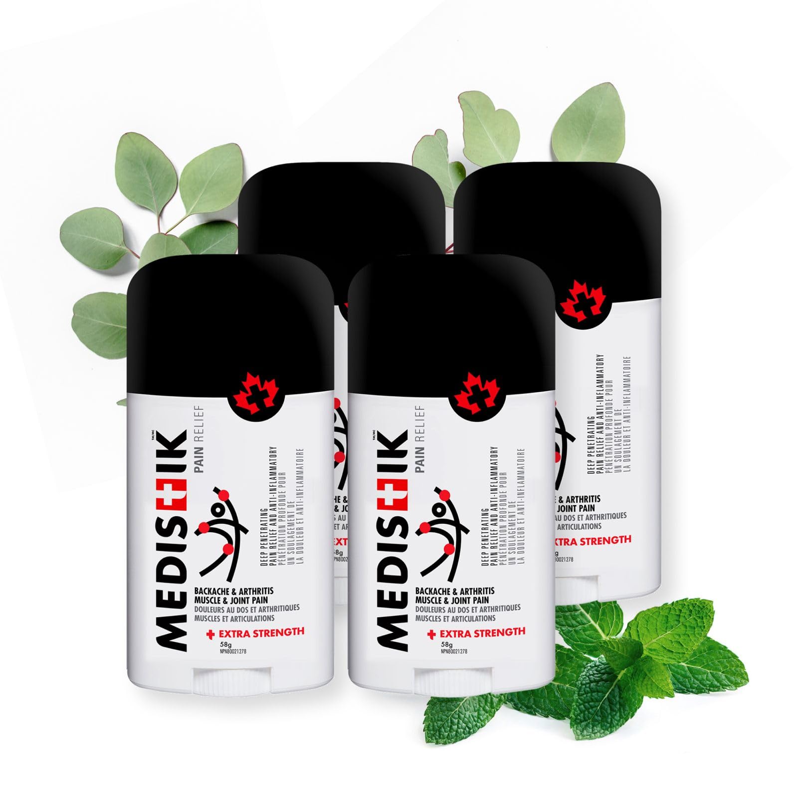 MEDISTIK Extra Strength Pain Relief Stick. Long Lasting Topical Pain Reliever for Backache Arthritis Muscle & Joint Pain 58mg Pack of 4
