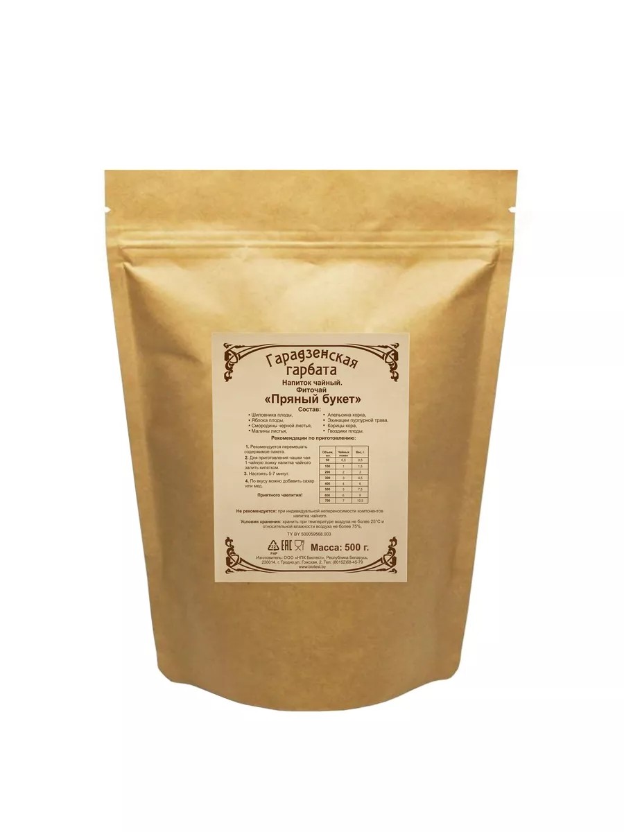 Фиточай "Пряный букет" с каждым глотком помогает окунуться в атмосферу домашнего уюта и тепла. Полезные свойства листьев малины, черной смородины, травы эхинацеи и плодов шиповника прекрасно дополнят апельсиновая корка и кусочки яблок, а гвоздика с корицей придадут незабываемый пряный аромат.