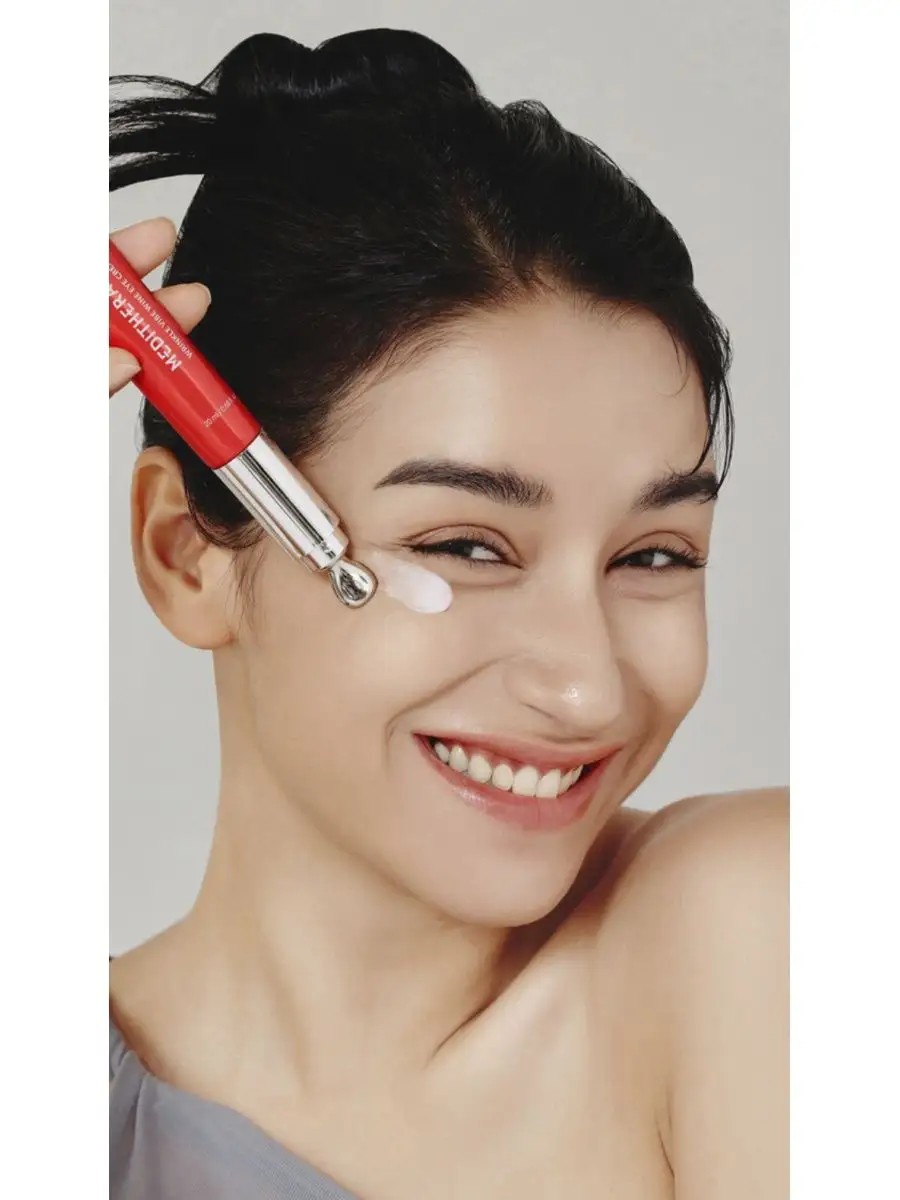 MEDITHERAPY WRINKLE VIBE WINE Eye Cream. This dual-function eye cream offers skin whitening and wrinkle smoothing benefits. It moisturizes beautifully and improves elasticity around the eyes. This dual-function eye cream whitens and smooths wrinkles. Wine extract, combined with fruit and root extracts, delivers noticeable results after just one week of use. Directions: Open the cap, press the tube, and apply the cream to the area requiring wrinkle smoothing. ② After turning on the vibrator, gently massage the area where the cream is applied. We also recommend using the cream on areas such as the nasolabial folds and décolleté. Precautions: If redness, swelling, itching, or other uncomfortable symptoms occur, stop using and consult a specialist. Keep out of reach of children. Keep away from direct sunlight. Ingredients: Purified water, glycerin, cetylethylhexanoate, methylpropanediol, shea butter, hydrogenated polyisobutene, polyglyceryl-3methylglucose distearate, 1,2-hexanediol, caprylic/capric triglyceride, dimethicone, niacinamide, glyceryl stearate, cetearyl alcohol, zemo root extract, centella asiatica extract, coconut coconut fruit extract, monognathia fruit extract, fig extract, beach strawberry extract, oris root extract, grape juice extract (5ppm), wine extract (5000ppm), hydrogenated lecithin, damask rose water, acetyl dipeptide-1 cetyl ester, acetyl hexapeptide-8, adenosine, butylene glycol, carbomer, ceramide NP, collagen, cyanocobalamin, disodium EDTA, ethylhexylglycerin, hydroxyethyl acrylate/sodium acryloyldimethyltaurate copolymer, hydroxyethyl cellulose, palmitoyl pentapeptide-4, PEG-100 stearate polysorbate 20, polysorbate 60, propanediol, sodium guaiazulenesulfonate, sodium polyacrylate, sodium stearoylglutamate, sorbitan isostearate, sorbitan laurate