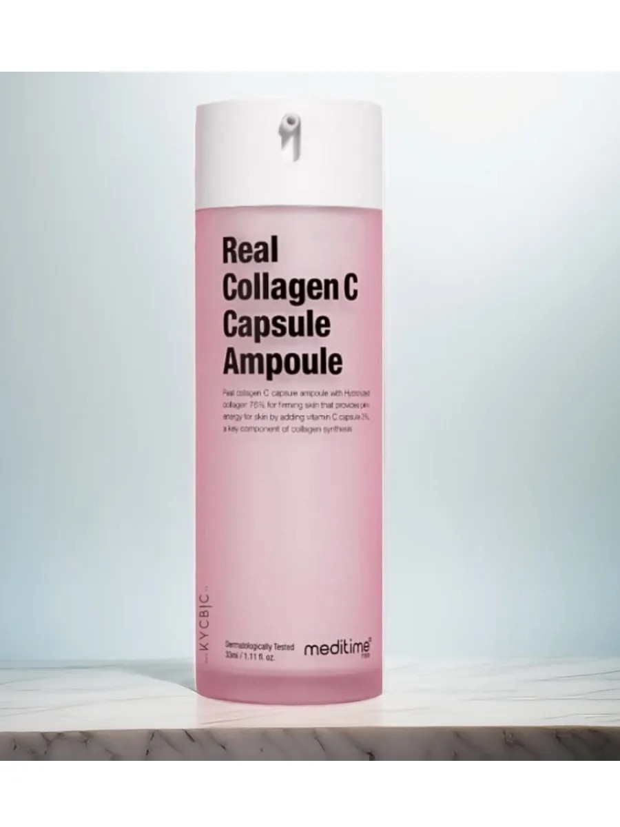 Meditime NEO Real Collagen C Capsule Ampoule, a collagen capsule ampoule with vitamin C, activates the synthesis of the skin's own collagen fibers and stimulates metabolic processes in the skin.