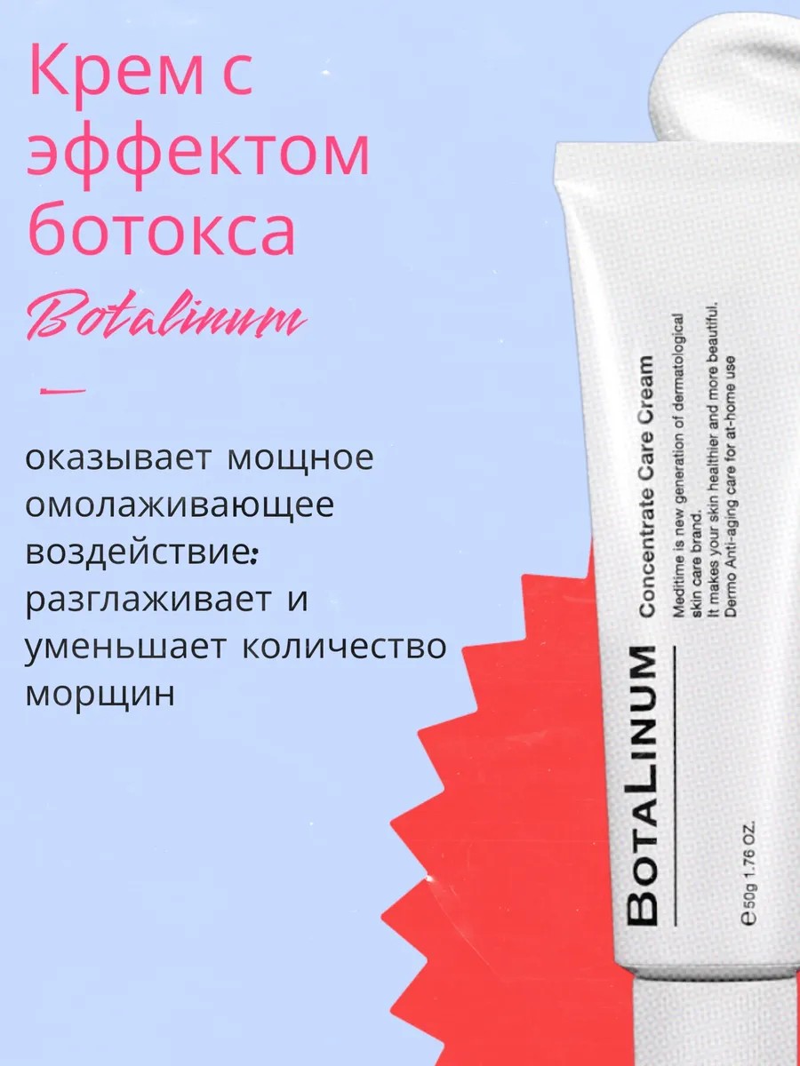 Крем Meditime Botalinum Concentrate Care Cream от Meditime создает эффект ботокса и предназначен для интенсивного ухода за лицом. Средство рассчитано на особенности возрастной, увядающей кожи. Оно совершенствует овал лица, борется с морщинами, разглаживая покровы, зримо омолаживает.