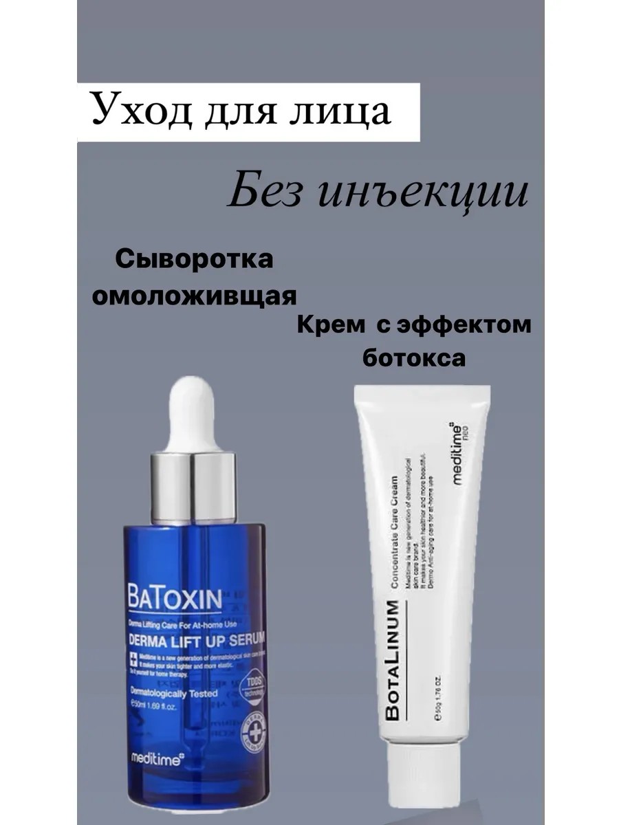 Крем для лица Botalinum - это инновационный крем против старения кожи с эффектом лифтинга, от корейского бренда Meditime, который выводит уход за лицом на новый уровень! Продукт входит в рейтинг лучшего омолаживающего крема против морщин. В составе имеются ботулин.