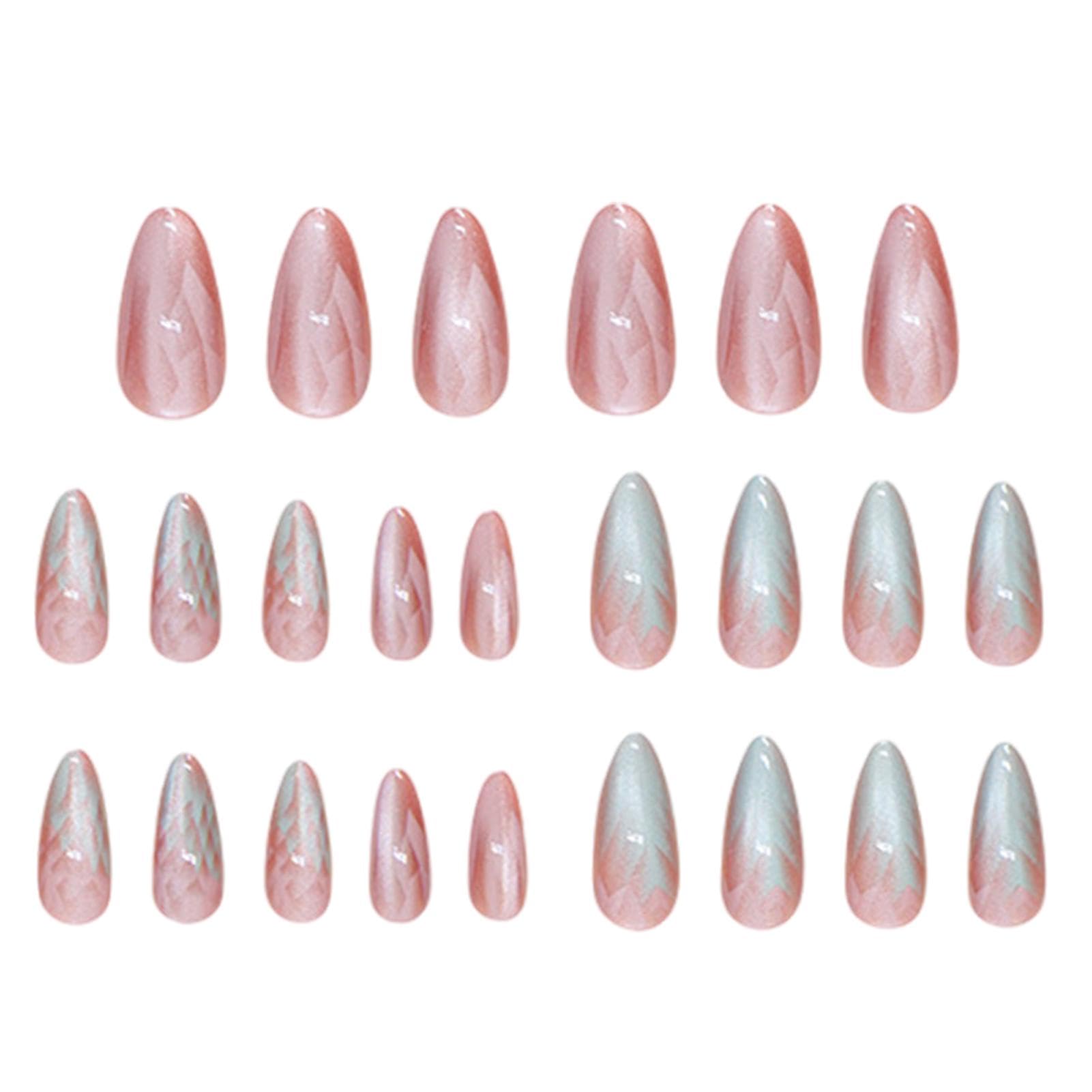 Medium Press On Nails Medium False Nails Ombre Almond 12 Sizes Cat Eye Artificial Press On Nails Includes Nail File For Woman