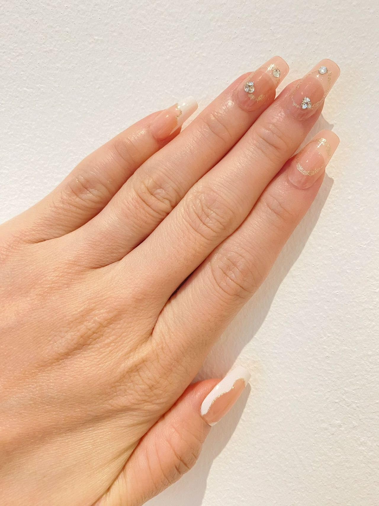 Medium Squoval Nude Base with Glitter Rhinestones Fake Press On Nail Set