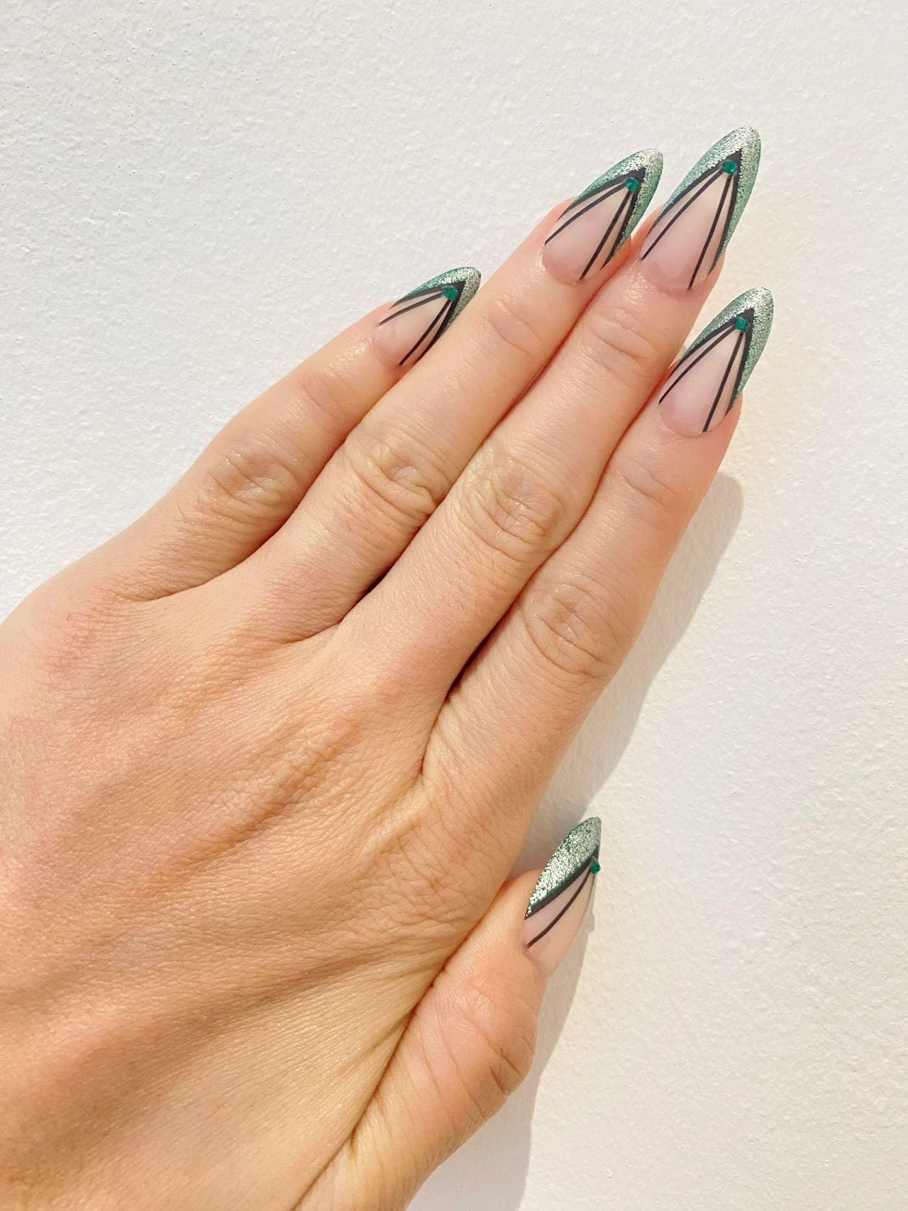 Medium Stiletto Green Crystal Line fake Press On Nails Press On Fake Nails