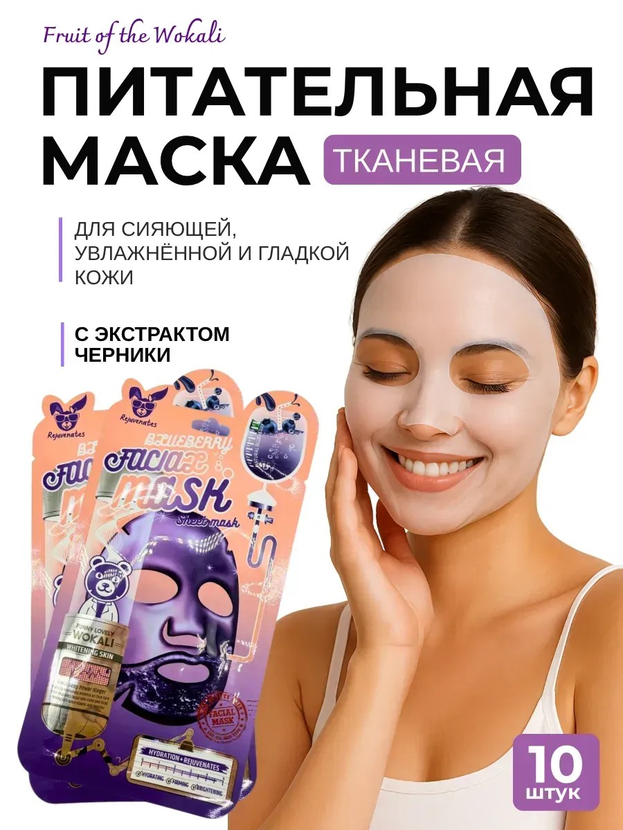маска для лица, тканевая маска, маска с черникой, увлажняющая маска, восстановление кожи, маска для сухой кожи, маска 10 штук, уход за лицом, маска от сухости, маска от тусклого цвета лица, фруктовая маска, осветляющая маска, маска для женщин, маска антиэйдж, витаминизированная маска, маска от морщин, mask
