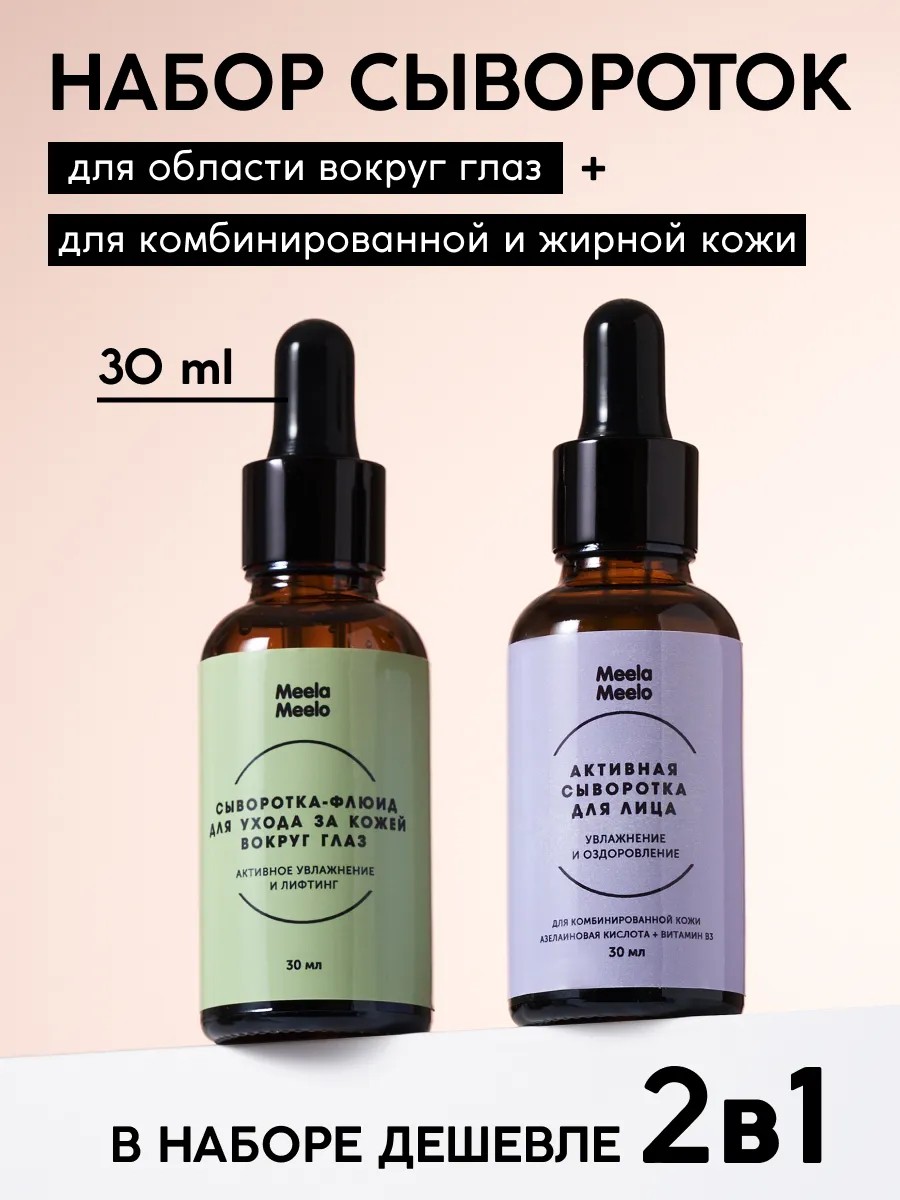 Meela Meelo Набор для лица 2в1: Активная сыворотка для лица "Увлажнение и оздоровление" + Сыворотка-флюид вокруг глаз "Увлажнение и лифтинг", 30 + 30 мл