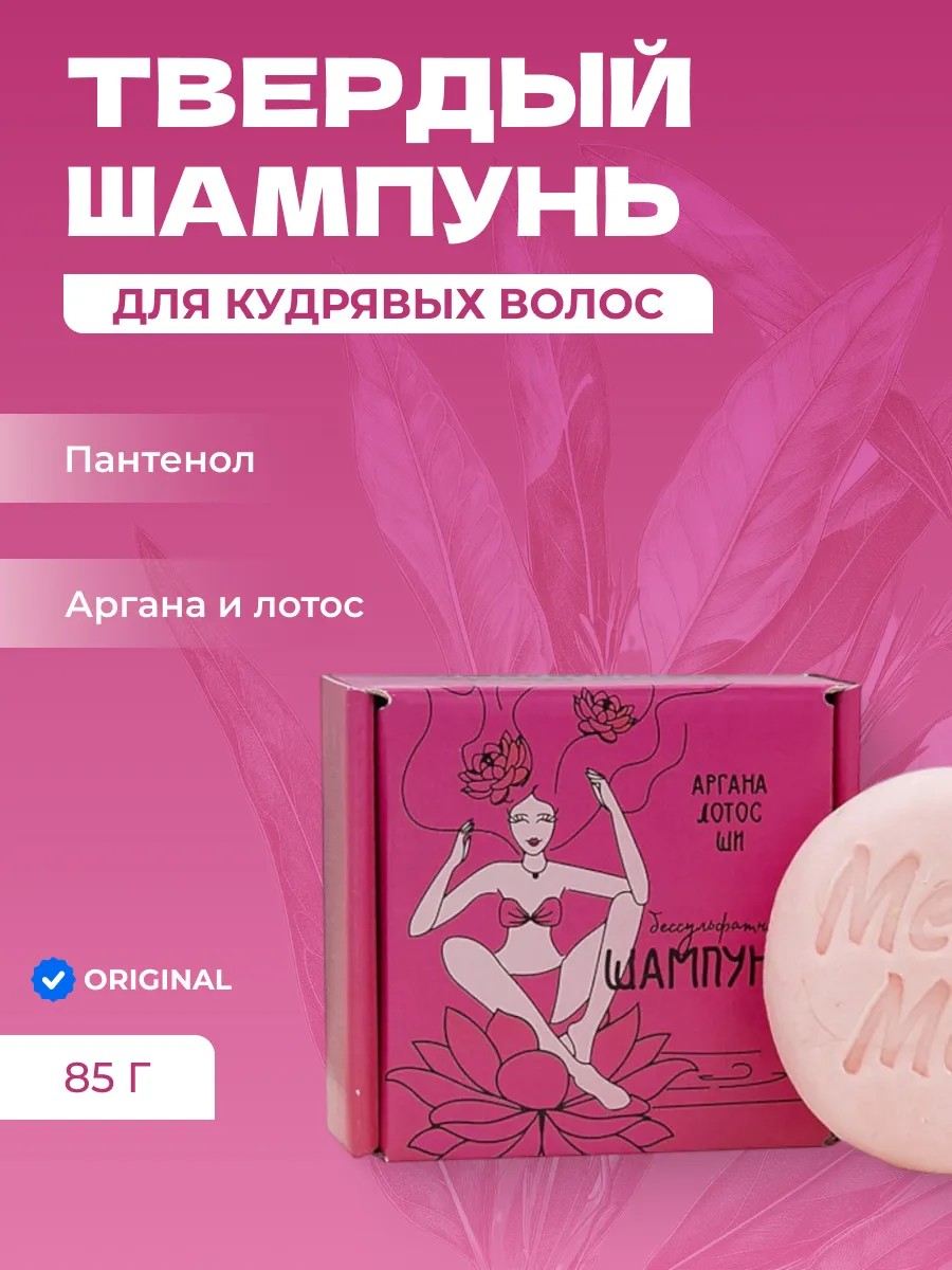 Бессульфатный твердый шампунь "Аргана-лотос-ши" для кудрей | 85 г