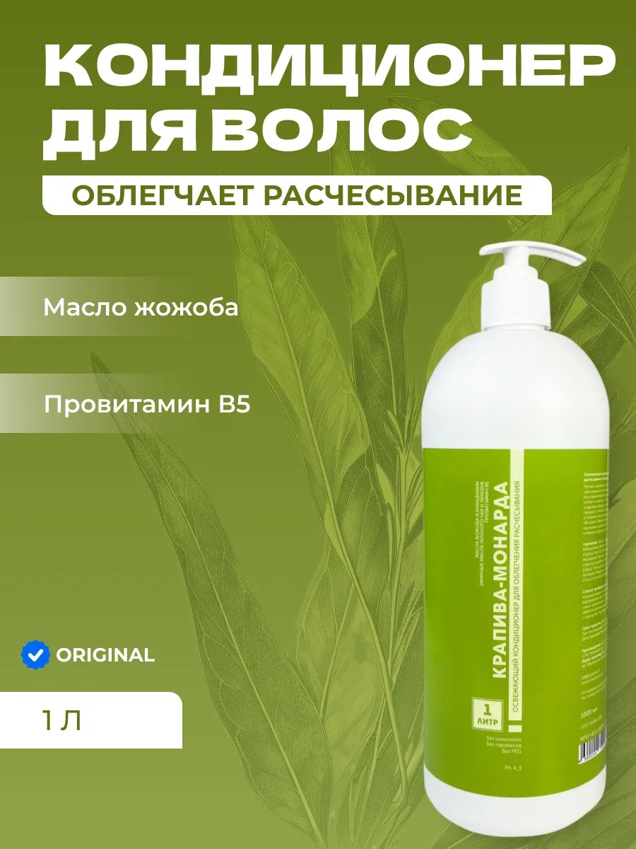 Бальзам-кондиционер для волос «Крапива-Монарда» облегчает расчесывание, придает мягкость и блеск без утяжеления. Формула без силиконов, парабенов и PEG подходит для ежедневного применения, поддерживает здоровье волос и кожи головы.