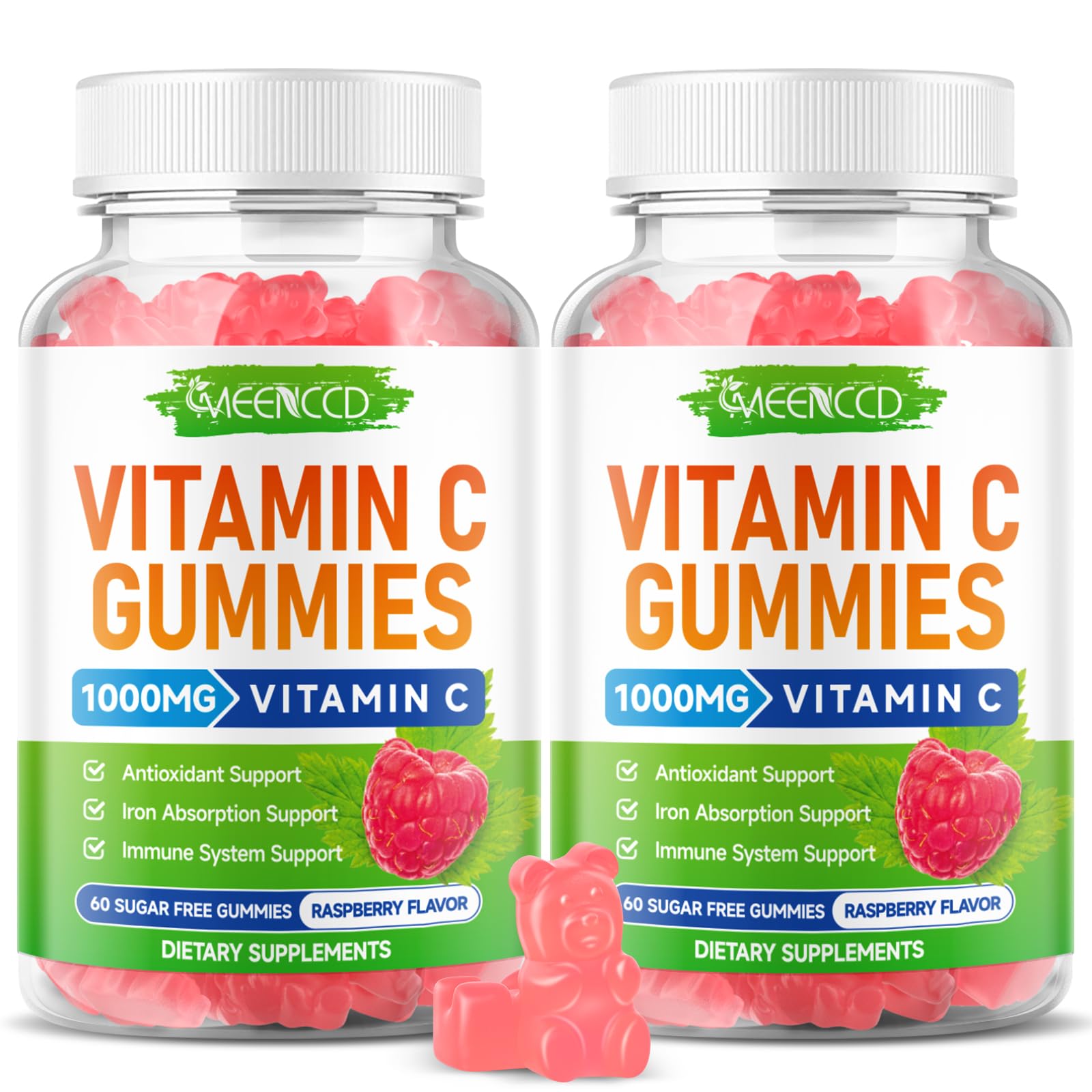 MEENCCD 2 Pack Organic Vitamin C Gummies for Adults Chewable Vitamin C Gummies with Zinc for Immune Support Vegan Non-GMO Sugar-Free Raspberry Flavor 120 Count