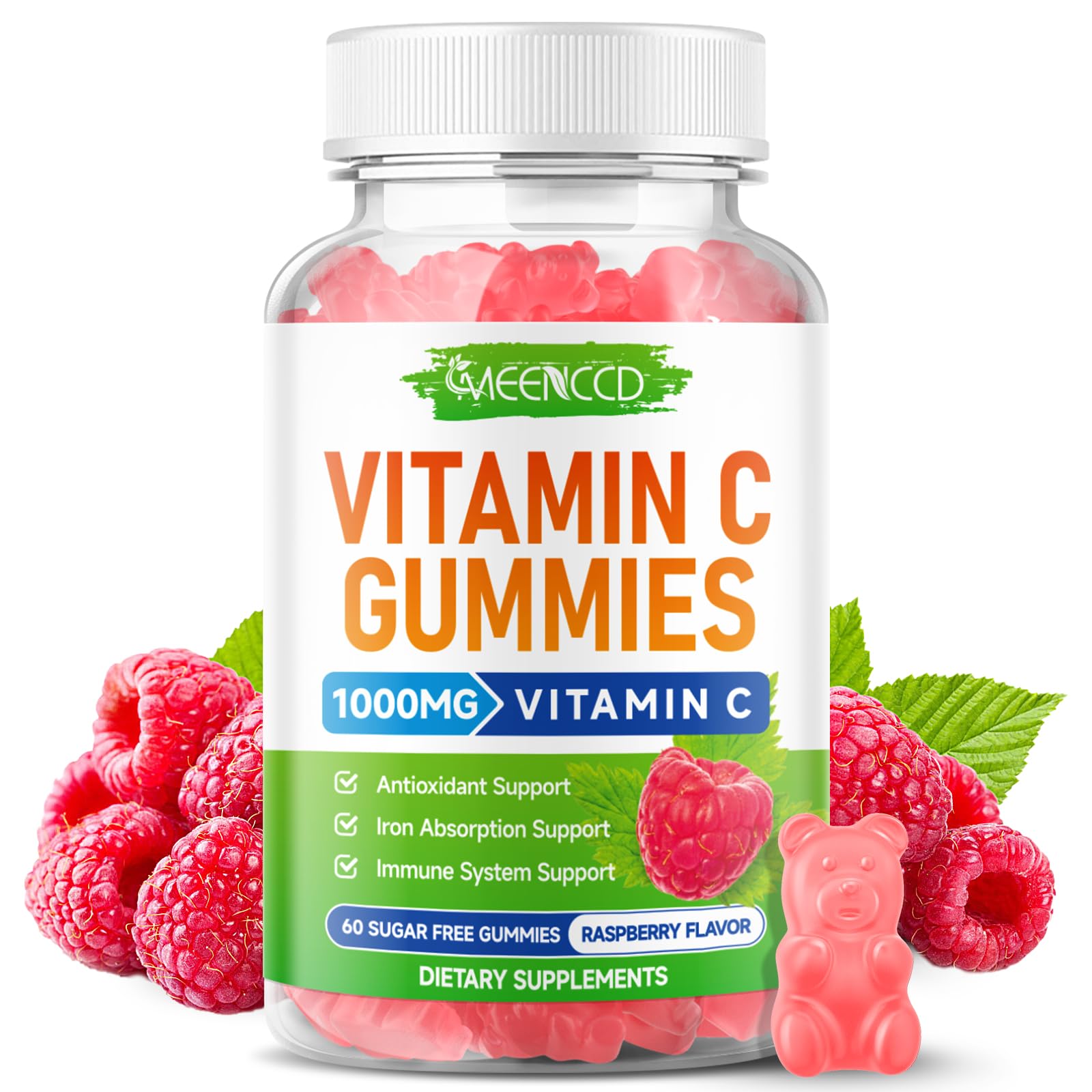 MEENCCD Organic Vitamin C Gummies for Adults Chewable Vitamin C Gummies with Zinc for Immune Support Vegan Non-GMO Sugar-Free Raspberry Flavor 60 Count