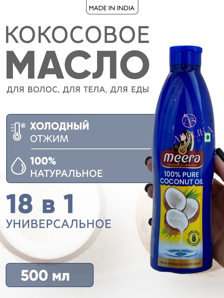Откройте для себя волшебство индийского натурального кокосового масла Meera — 100% чистого продукта. Универсальное рафинированное масло с уникальной технологии тройной фильтрации сохраняет полезные свойства, оставаясь нейтральным в использовании.
