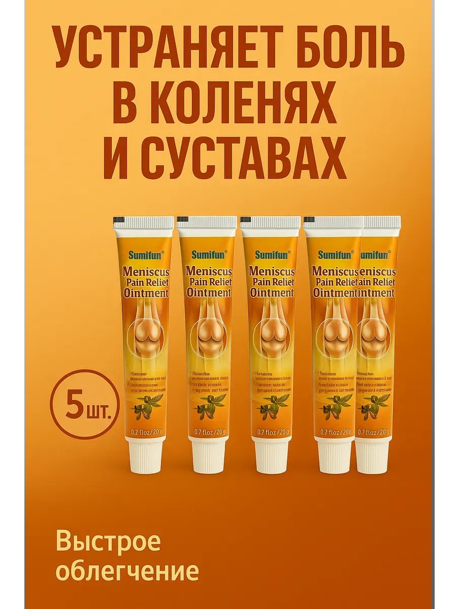 Sumifun — натуральная мазь с пчелиным ядом и растительными экстрактами, созданная специально для эффективного облегчения боли в коленях, суставах и при воспалении мениска. В упаковке 5 шт. Это спасение для тех, кто устал терпеть: хруст, отёки, ограниченную подвижность, резкую боль при ходьбе или после нагрузок.Боль мешает спать, двигаться, работать? С этой мазью вы вернётесь к активной жизни. Решает ключевые проблемы покупателей: