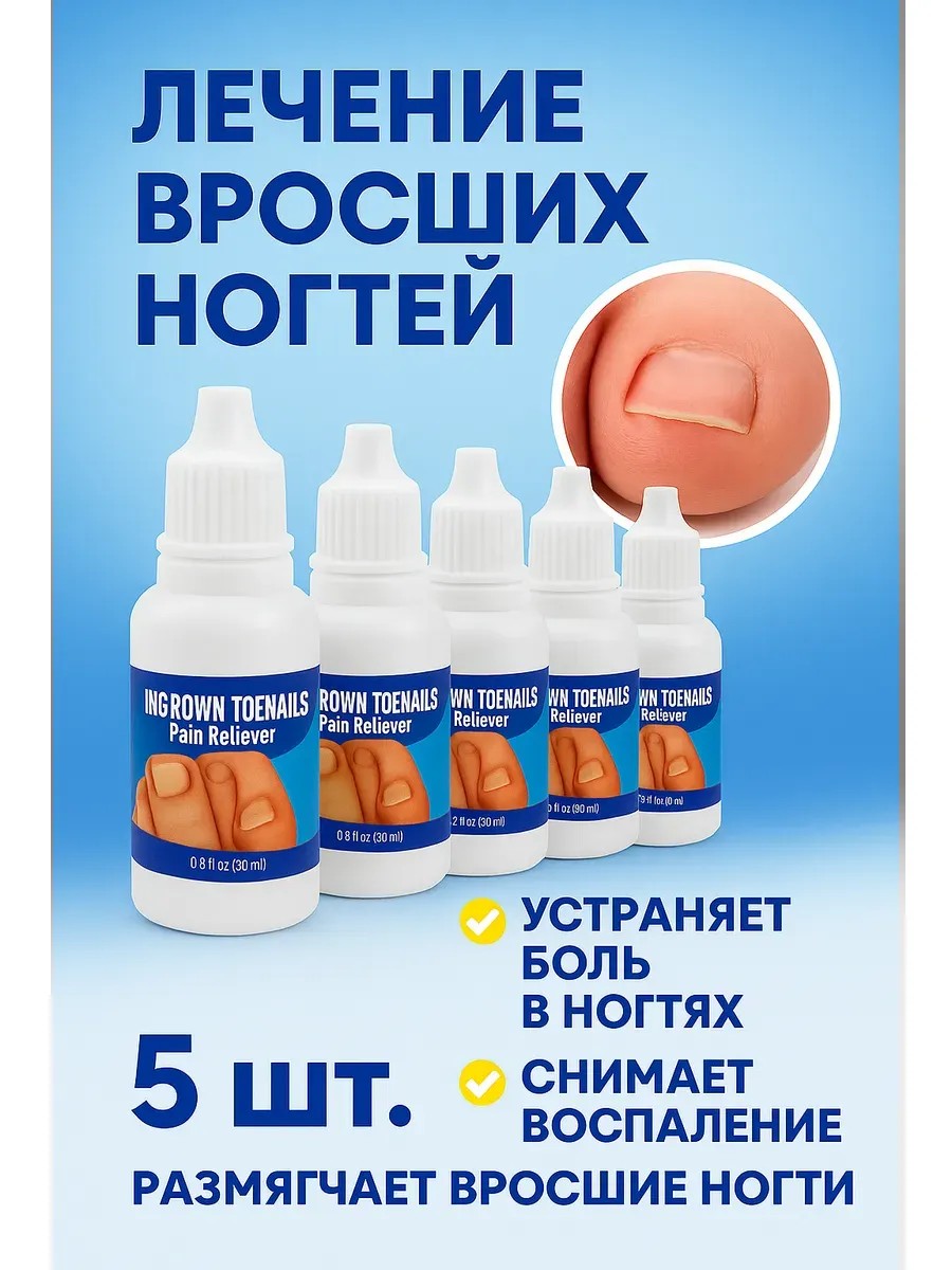 Наше средство от вросшего ногтя — это интенсивная формула нового поколения, которая работает с первого применения и избавляет от проблемы дома, без врачей и болезненных процедур. Снимает боль и воспаление уже после первого нанесения.Размягчает ногтевую пластину — ноготь выходит мягко, без надрезов.Устраняет гной, припухлость, покраснение.Предотвращает повторное врастание.Обладает мощным антисептическим и заживляющим эффектом