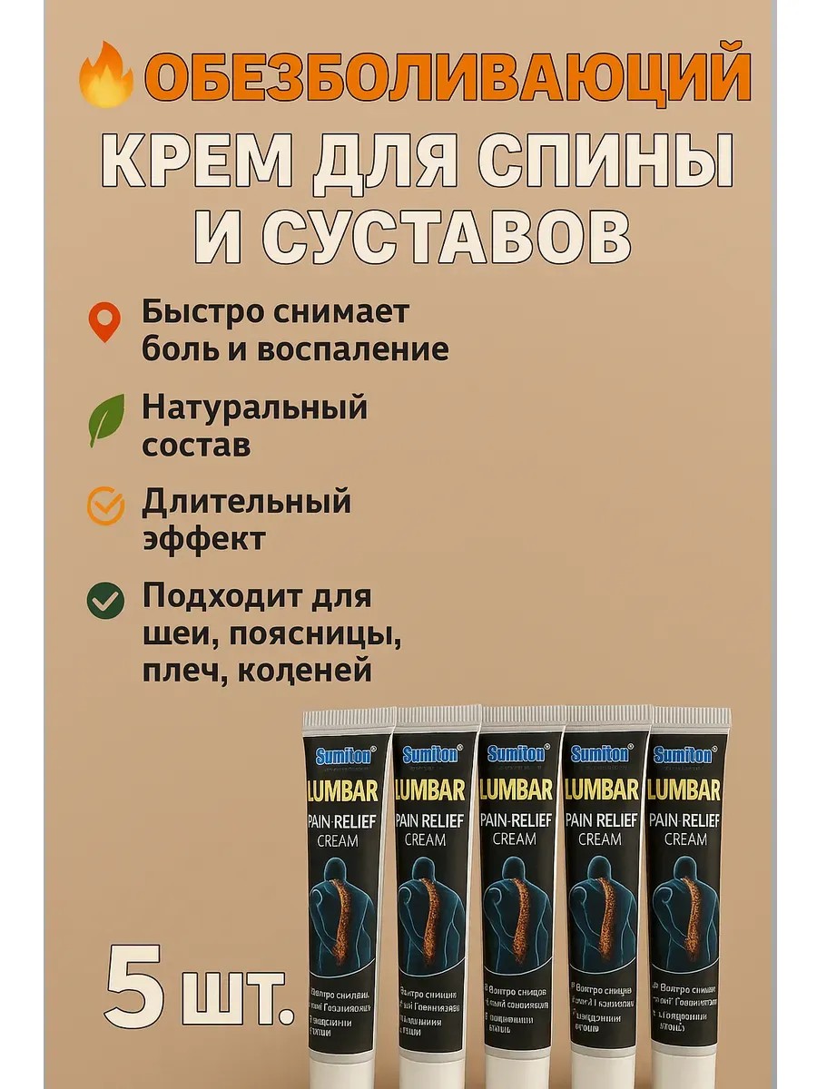 Чудо -мазь от болей в спине и суставах 5 шт— незаменимый спасатель для вашего здоровья.Мучают боли в пояснице, суставах, коленях или шее? Спина "заклинивает" после дачи, работы или переохлаждения? Эта разогревающая мазь — ваш верный помощник при острых и хронических болях. Решает главные проблемы покупателей: Боль в спине, шее, пояснице; Артрит, артроз, остеохондроз;Мышечное напряжение, отёки, воспаления; Радикулит, травмы, растяжения; Ломота после физической нагрузки или переохлаждения.