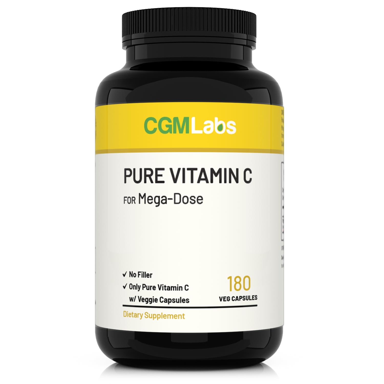 Mega Dose Pure Vitamin C 1000 mg 180 Easy-to-Swallow Veg Capsules by CGM Labs
