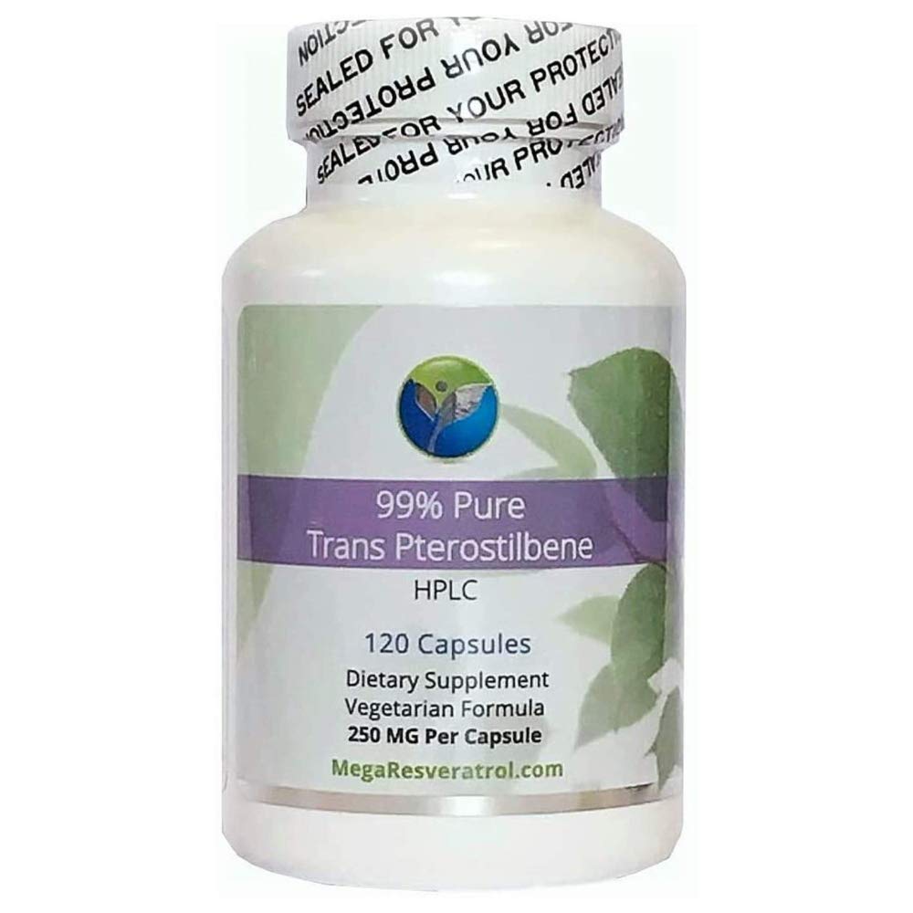 Mega Pterostilbene 99% Pure Micronized Trans-Pterostilbene 250 MG - 120 Vegetarian Capsules. Excipients Free. Manufactured in The USA.