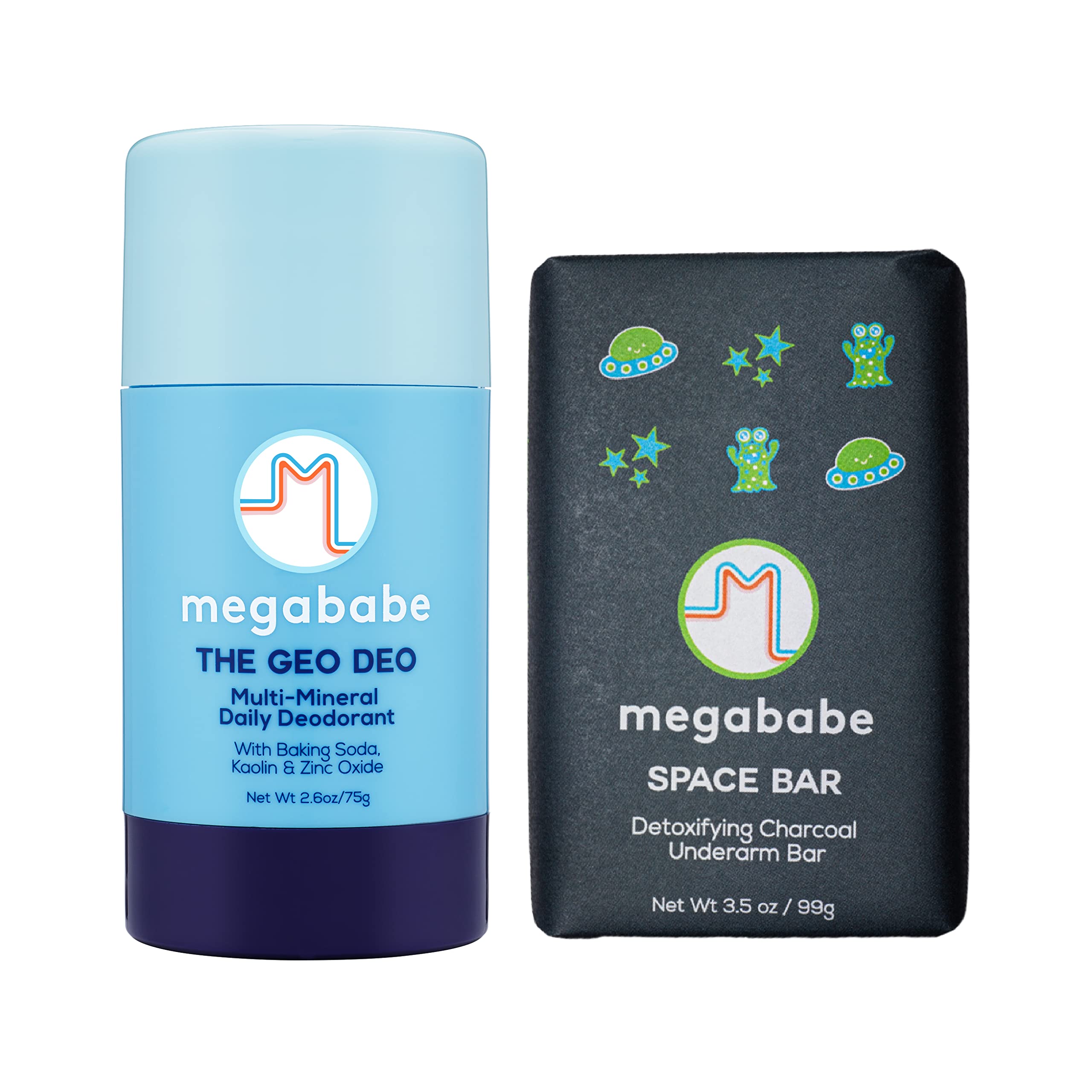 Megababe Underarm 2-Piece Bundle - Geo Deo Daily Deodorant 2.6 oz & Space Bar Detox Soap 3.5 oz | Odor Protection Aluminum Free