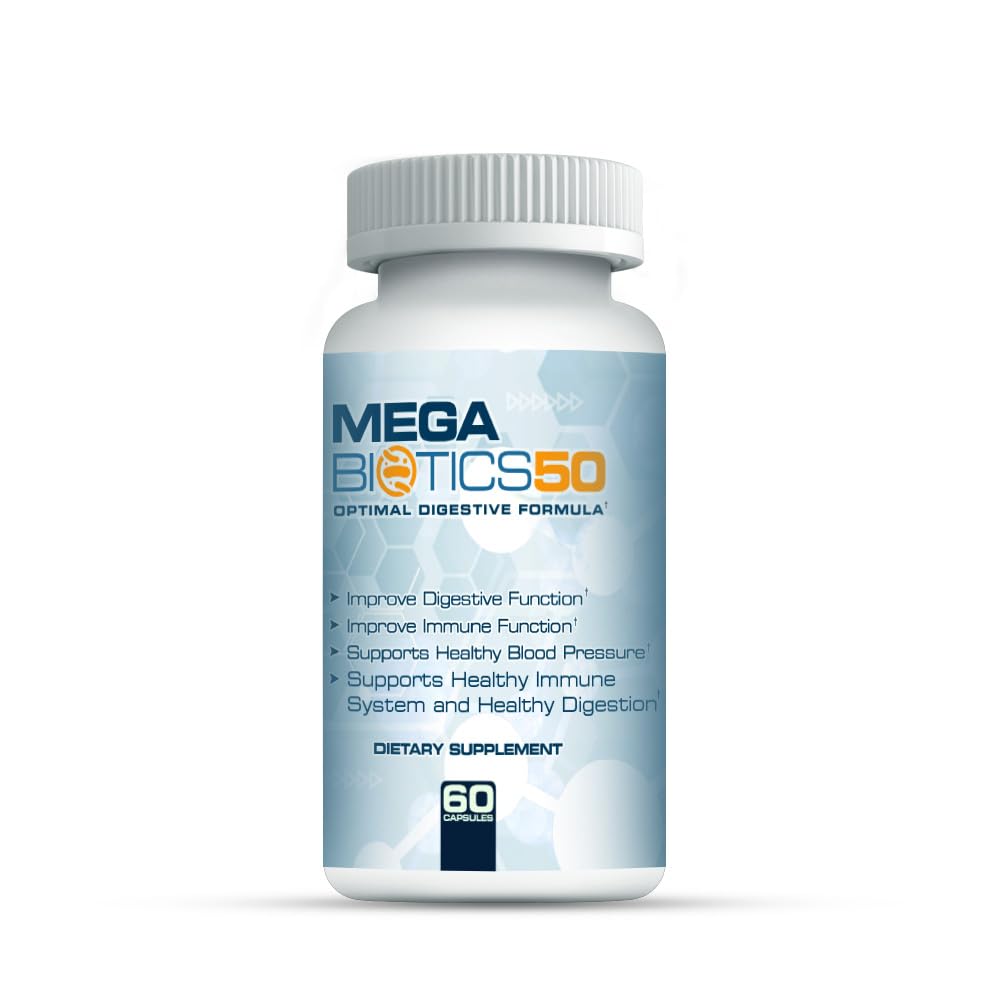 MegaBiotics50-40 Billion with 10 Probiotic Strains Dairy Soy and Gluten Free Strain Verified 60 Capsules