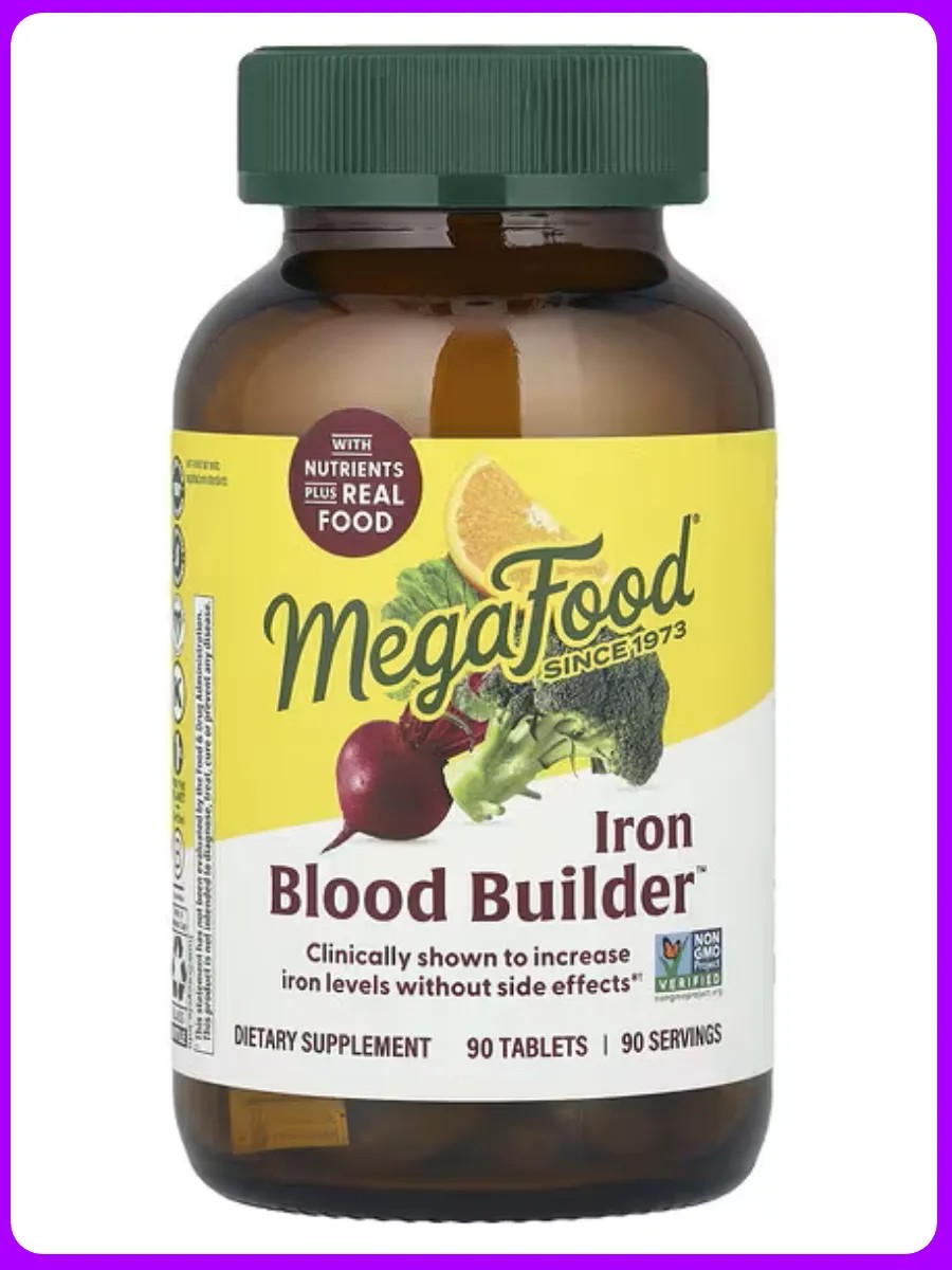 MegaFood Blood Builder boosts iron levels without nausea or constipation.