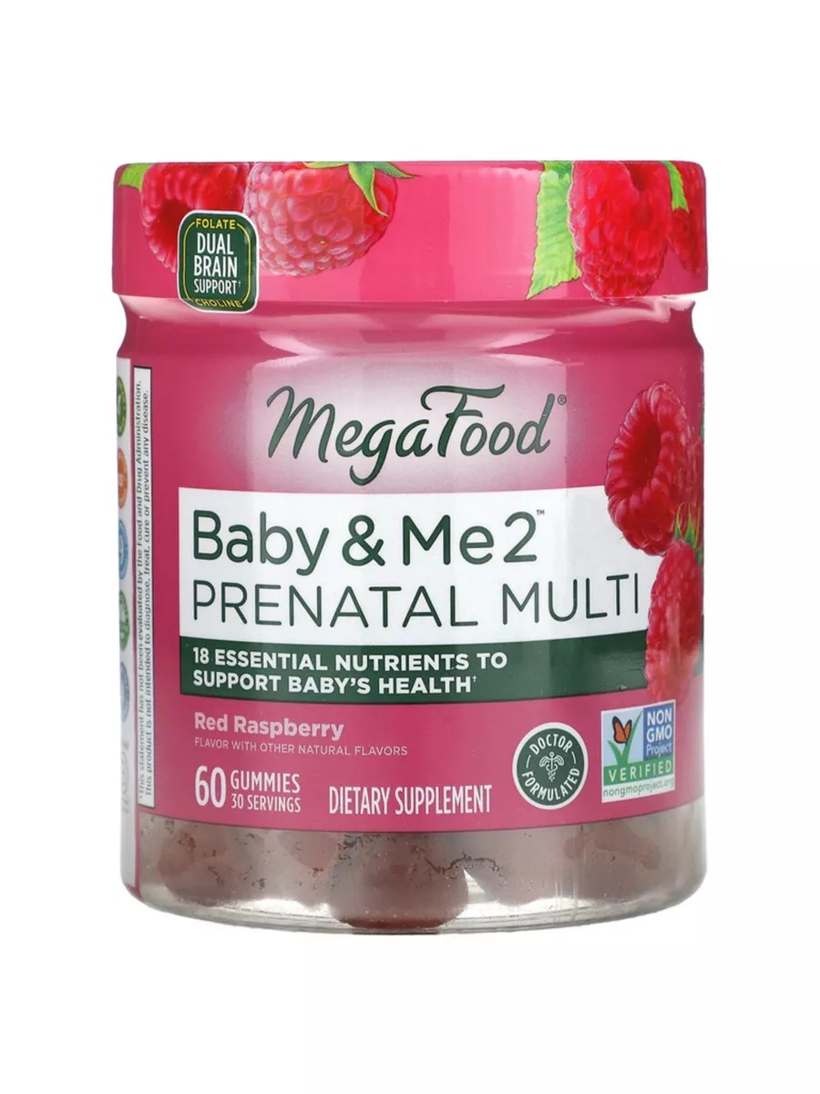 Пищевая добавка MegaFood Baby & Me 2 с мультивитаминами для поддержки иммунитета во время беременности. Фолиевая кислота и холин включен для поддержки здорового развития мозга ребенка, а также B12 и B6 для выработки клеточной энергии.
