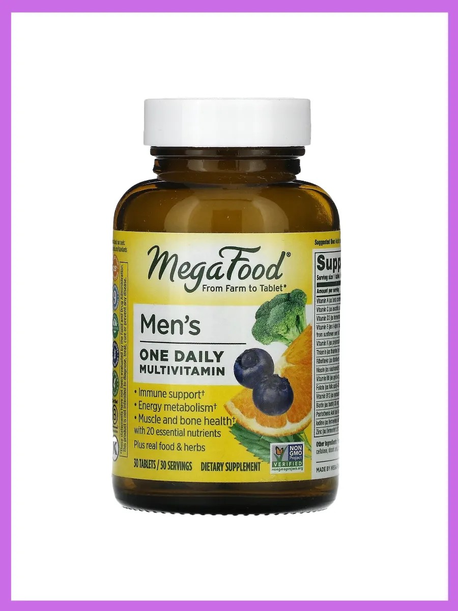 MegaFood, Men's One Daily, daily vitamins for men. MegaFood's One Daily vitamins for men are designed for men, providing all the necessary elements to maintain health and energy in everyday life.