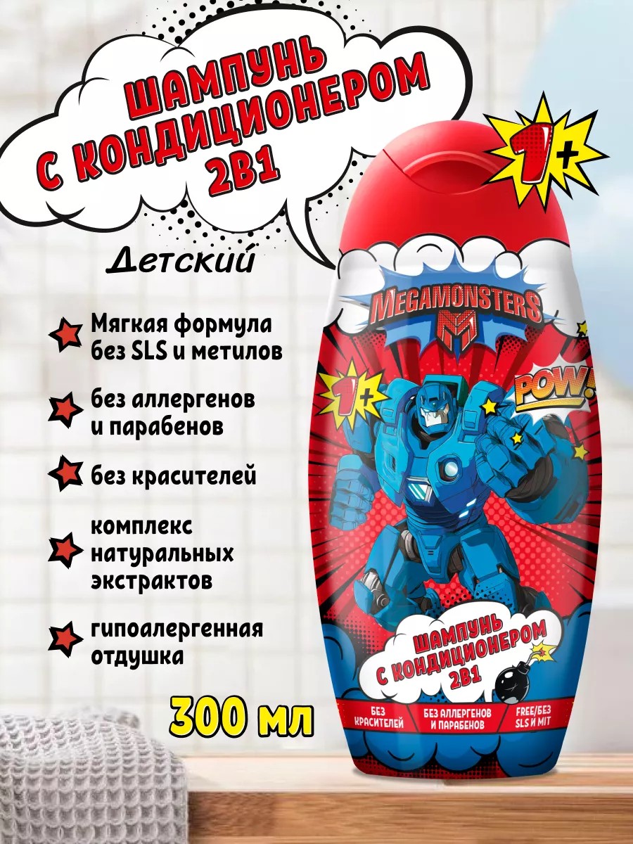 MegaMonsters is a series of products for real boys – fearless and invincible heroes! Bright and bold, ready for heroic deeds and open to new experiences! Mom's shampoo and dad's shower gel won't do for these kids. Only the real deal, only boyish, only for them! The juicy scent of victory and a complex of active ingredients will give you a boost of positivity for the whole day. With the new MegaMonsters – to new victories! The time has come! Choosing the right shampoo is an important part of hair care. Is your little one's hair not manageable enough? Choose a shampoo with conditioner. The MegaMonsters series is tailored to the needs of children's skin and hair. The gentle formula and complex of active ingredients provide proper care and gentle cleansing. The bright, candy-like aroma invigorates and sets the stage for heroic deeds and achievements. The natural conditioner based on guar gum ensures easy combing and makes hair manageable without weighing it down. D-panthenol, allantoin, and milk extract promote restoration, nourishment, and protection. Pineapple, pomegranate, papaya, avocado, and passion fruit extracts saturate hair and scalp with trace elements, adding tone and shine. Directions for use: Apply a small amount of shampoo to wet hair, massage until lather forms, then rinse thoroughly. Repeat if necessary.