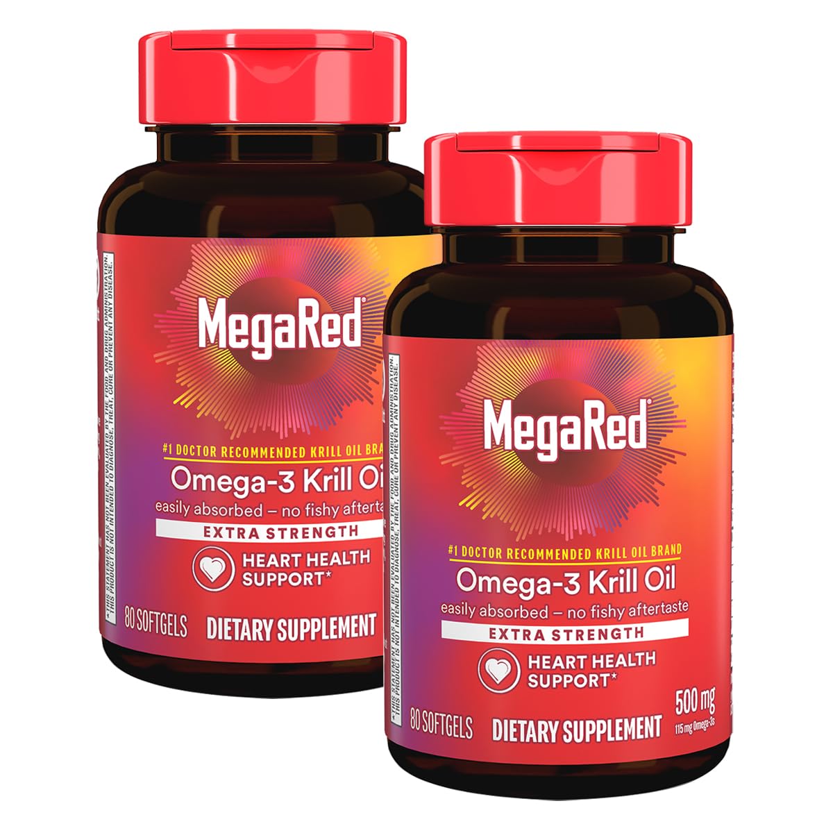 NO FISHY AFTERTASTE EASY ABSORPTION: Krill Oil is carried in a phospholipid form which is better absorbed by the human body and because it's krill oil as opposed to fish oil, MegaRed Krill Oil has no fishy aftertaste or odor. 3X MORE PURE: MegaRed with PureTechTM is 3x MORE PURE than regular krill oil. Salts and other impurities are removed to provide the purest krill oil on the market. HEART HEALTH: MegaRed Omega 3 Krill Oil supplements provide an optimal combination of omega-3 fatty acids and the powerful antioxidant astaxanthin to support heart health in a once daily softgel. OMEGA 3 SUPPLEMENT: MegaRed Omega 3 Krill Oil has been shown to significantly increase your omega 3 index in just 30 days. Supportive research has shown that consumption of EPA and DHA omega-3 fatty acids may reduce the risk of coronary heart disease . ANTARCTIC KRILL OIL: Krill is one of the world's most abundant and sustainable organisms. MegaRed only sources krill from the Antarctic where krill is most abundant.