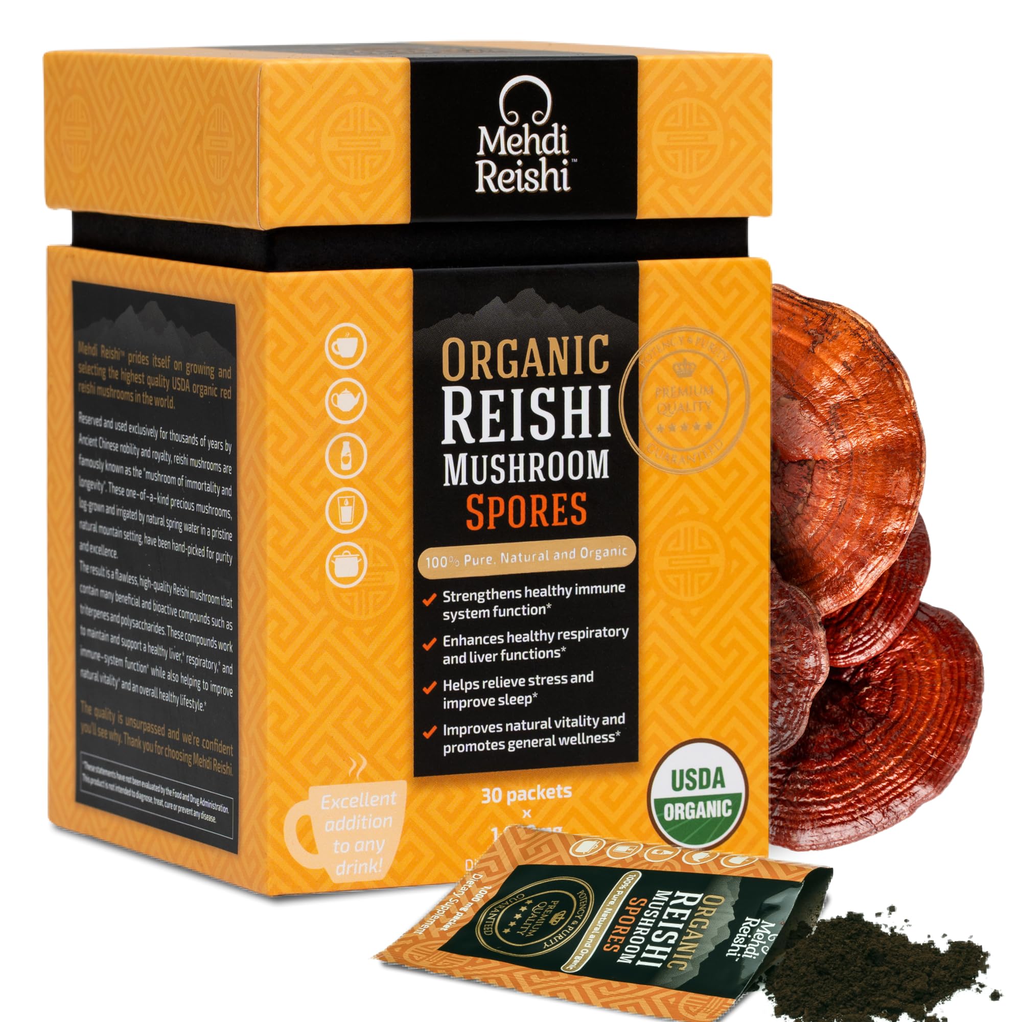 QUALITY YOU CAN TRUST: Each serving is individually sealed to ensure maximum freshness and potency. Experience the assurance of pure, uncompromised quality——backed by our satisfaction guarantee. CLEAN LABEL: Our vegan, non-GMO, gluten-free, certified organic reishi spores powder contains absolutely no fillers, artificial colors, or preservatives of any kind. Third-party tested and certified for purity potency and made in a GMP-compliant facility. ETERNAL WISDOM OF REISHI: For over two millennia, Reishi, known as "Lingzhi" in China, has stood as a cornerstone of Traditional Chinese Medicine, valued for its power to rebalance the body, uplift the spirit, and support longevity. Mehdi Reishi honors this timeless legacy through modern, advanced extraction technology, creating a pure and potent elixir for enduring vitality and inner peace. INDUSTRY-LEADING IMMUNE SUPPORT: Backed by independent research and ranked the 1 Reishi Mushroom Brand in a recent study for immune response, Mehdi Reishi delivers science-driven, total-body wellness. With pure, bioactive Ganoderma lucidum, our advanced reishi spores powder helps optimize immune strength, enhance natural defense, and support sustained energy and vitality for overall well-being. 100 PURE POWERFUL: Experience the full potency of nature with our premium shell-broken reishi spore powder—rich in triterpenes for maximum bioactivity. Using advanced low-temperature shell-breaking technology, we preserve every vital compound to ensure high bioavailability for fast, efficient absorption. Cultivated naturally outdoors on real wood in pristine mountain air, nourished by pure spring water, and hand-picked at peak maturity for unmatched quality.