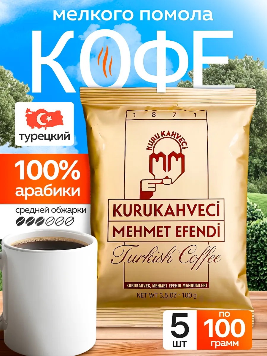 Турецкий кофе Kurukahveci Mehmet Efendi 5ШТ