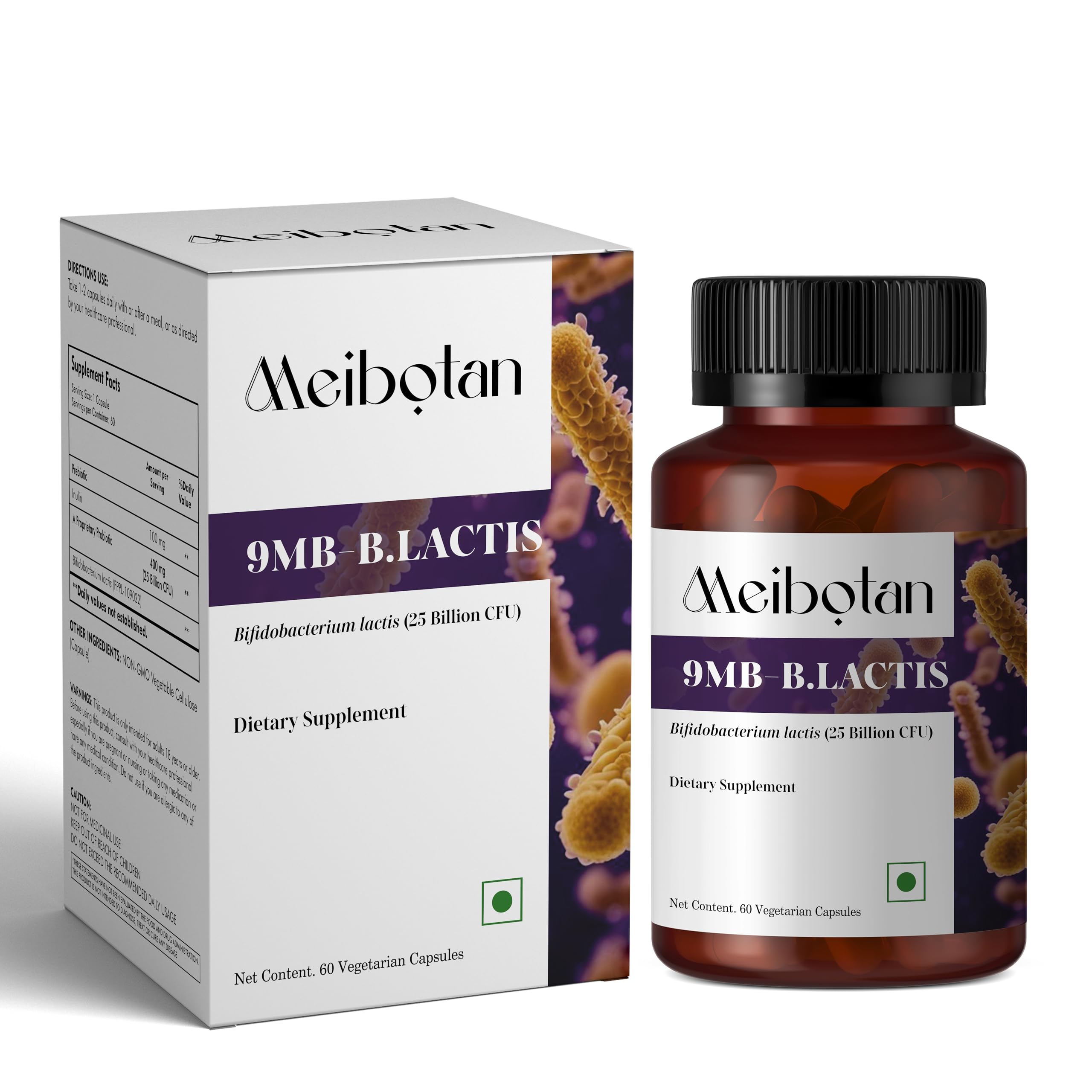 Meibotan probiotics for digestive health: To build digestive health and support immunity, take 2 capsules 1-2 times daily . Gluten, Dairy Wheat Free: Meibotan Probiotic is gluten free, dairy free, wheat free, and is suitable for vegetarians. Quality Ingredients - We're proud to use some of the finest ingredients for peak performance. Our Probiotic veggie capsules are free of unnecessary additives. Our Unique Strain: Bifidobacterium lactis (B. lactis) is a probiotic that can may help with digestion, immunity, and respiratory tract infections. Meibotan Probiotic: Our probiotic helps strengthen digestive support probiotics for women and men help flush bad bacteria and allow good bacteria to flourish helps provide immune support and improve digestion by breaking down carbs and sugars .
