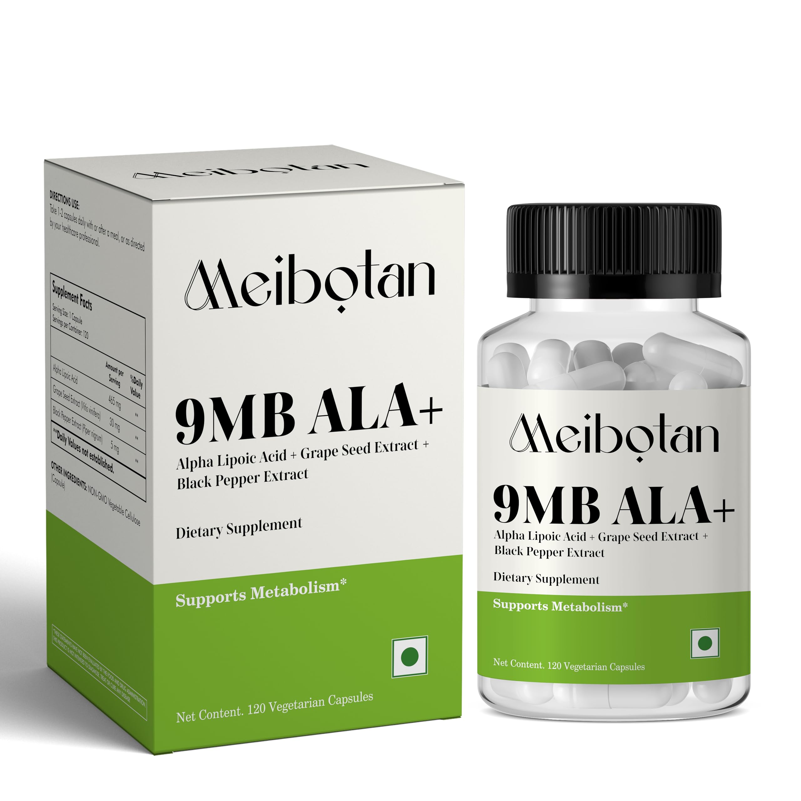 MEIBOTAN Supplements Alpha Lipoic Acid 500 mg with Grape Seed Extract & Piperine Extra Strength 120 Veg Capsules